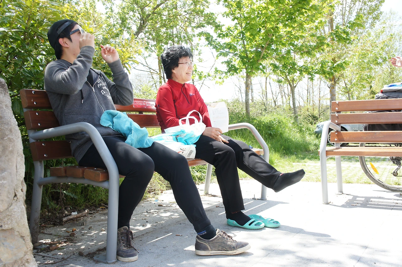따스한 햇살 아래 덩그러니 놓여있는 벤치를 보니 왠지 노곤함이 밀려오기 시작했지만 약해진 마음을 추스르고 다시 무거운 발걸음을 옮겼다. 여전히 물집은 퉁퉁 불어 나아질 기미라곤 눈곱만큼도 보이지 않았다. 요 며칠 신발이 바닥에 끌리며 드르륵- 하는 소리를 만들어냈다. 이런 소리가 들릴 때마다 내 체력이 고작 이것밖에 되지 않는지에 대한 생각이 밀려왔다. 오늘따라 마음은 부쩍이나 예민해진 상태. 신발도 양말도 모두 벗어던지고 마을 한편에 심드렁하게 누워있는데 누군가가 내 이름을 불렀다. 잔잔한 수면이 순식간에 파장으로 흔들렸다.