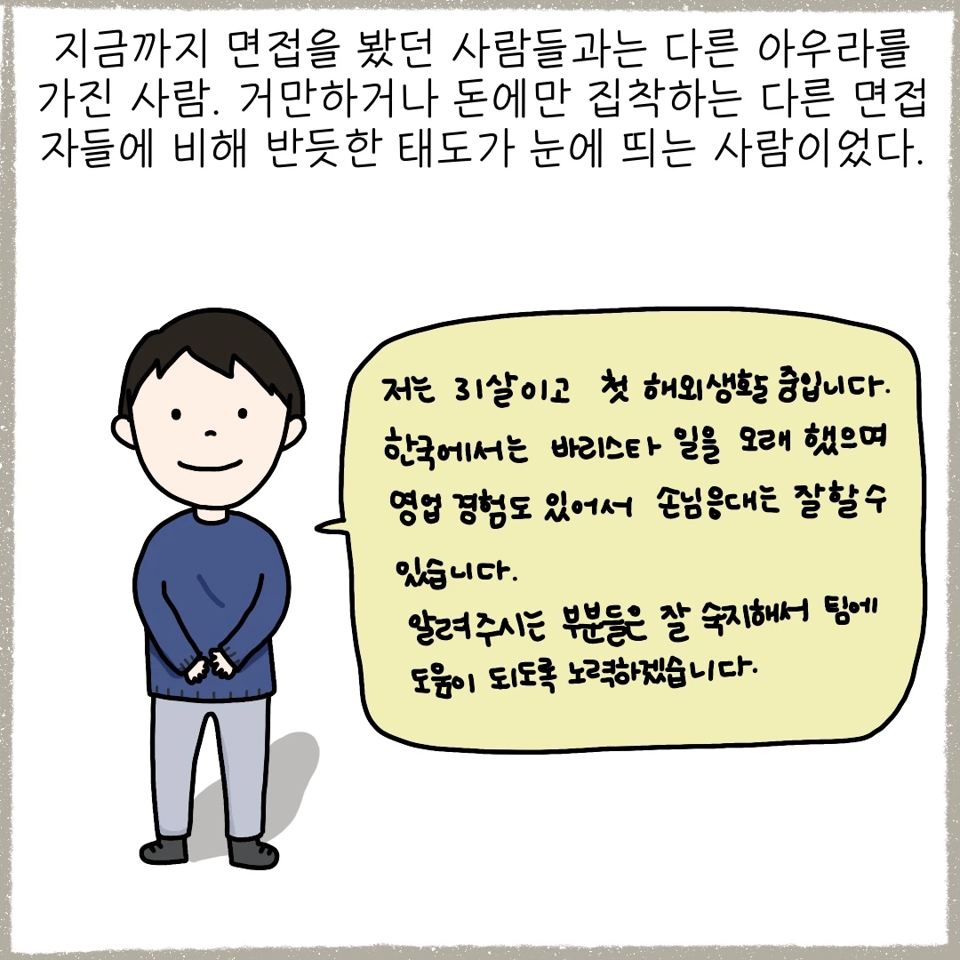 남편과 롱디를 시작한 지 3주 차 그리고 10일 후면 남편은 베트남으로 떠나는 일정을 앞두고 있습니다. 아직 실감이 나지 않기도 하지만 다른 한 편으로는 섭섭하고 아쉬운 마음이 들기도 하더군요. 하루 몇 통의 카톡과 전화로 안부를 전하는 일상을 이제 살아야 되겠지요. 편지함을 정리하다 문득 우리가 처음 만난 날을 떠올리게 되었습니다. 조금은 특이하게 면접관과 면접자로 만난 사이. 한 달간의 프로젝트를 함께 하면서 점점 그에게 확신을 가지게 되었던 시간들을 떠올려봅니다.