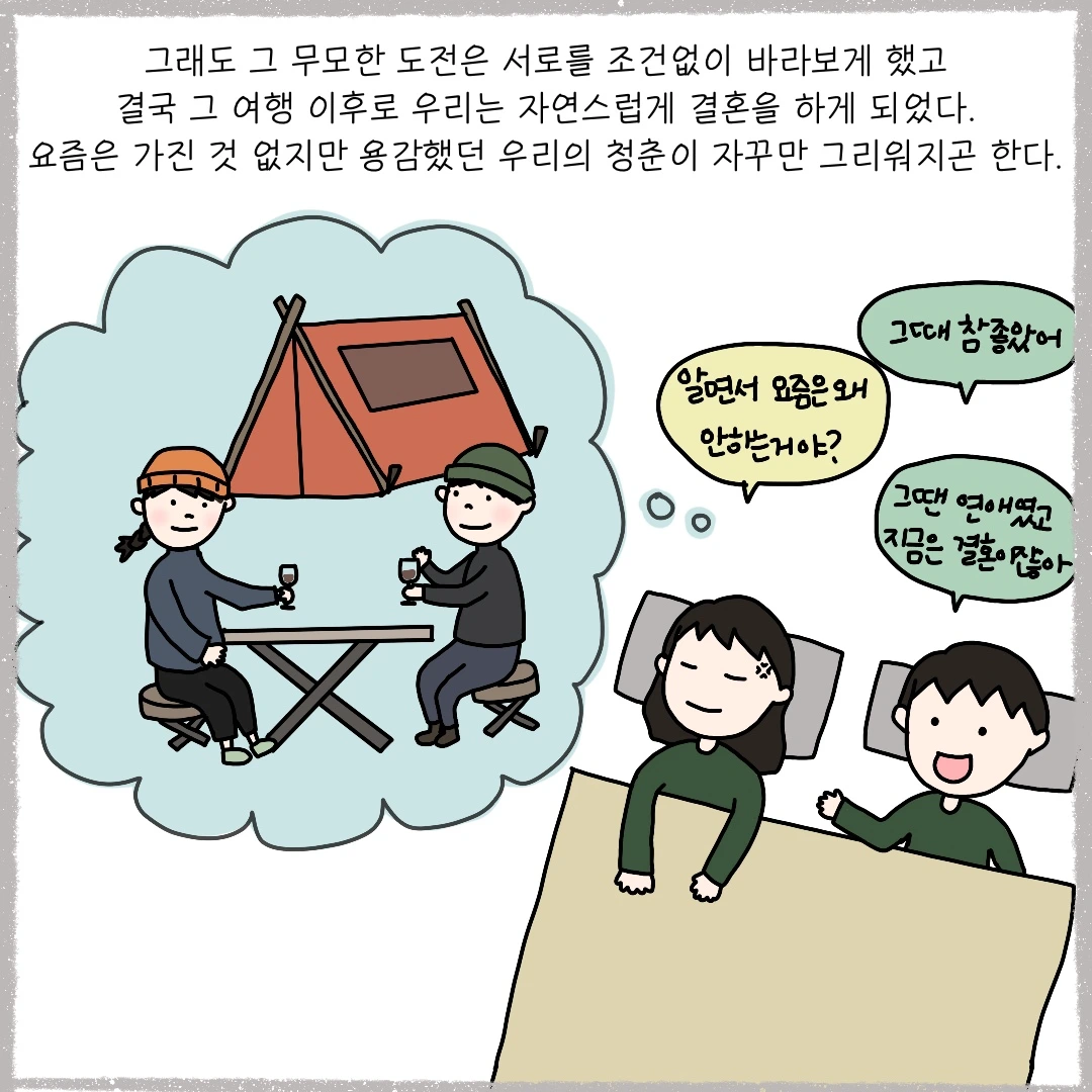 (불과 몇 년 전이지만) 그 시절을 떠올리면 어떻게 그렇게 두 사람 모두 가진 게 없었을까요. 그렇다고 지금 더 많이 가진 것은 아니지만 그래도 결혼을 하고 마음의 여유가 생긴다는 말에 어느 정도 공감을 하는 편입니다. 무모하게 호주에 도착했지만 그리 넉넉하지 않은 주머니였는데 호주에서 함께 지내던 분들이 많은 도움을 주신 덕분에 십시일반으로 짐을 꾸려 일주일의 로드트립을 떠날 수 있었습니다. 차를 빌려준 선배, 꽃보다 청춘 촬영이 끝나고 남은 보조식품들을 아낌없이 싸주시던 회사분들 덕분에 매일 캠핑장에서 든든한 한 끼를 해결할 수 있었지요. 이틀 내내 비가 내려 텐트가 젖어가던 기억, 캠핑장의 부엌에서 오래오래 머물며 와인을 마시던 일, 서핑을 배우러 가서 바닷물만 잔뜩 마시고 돌아온 일, 매일 아침 못생기고 퉁퉁부은 얼굴로 눈곱만 떼고 커피를 마시던 일 모두 지금은 너무나 그리운 기억이 되어버렸습니다. 당신도 혹시 있으신가요? 무모했던 청춘의 기억, 시간을 되돌려도 아마 다시 무모한 선택을 했을 거라고 생각되는 추억들 말입니다.