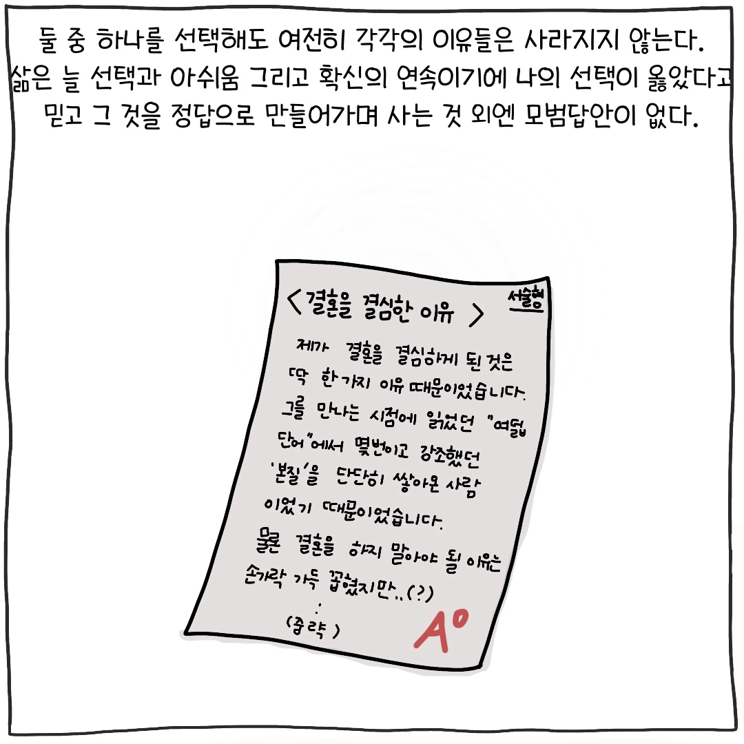 그래도 미래에는 분명 그 선택이 옳았다고 말하는 나 자신을 자주 떠올린다. 그는 내가 꾸는 꿈을 가장 잘 이해해주는 사람이자 응원해주는 유일한 사람이었으니까.