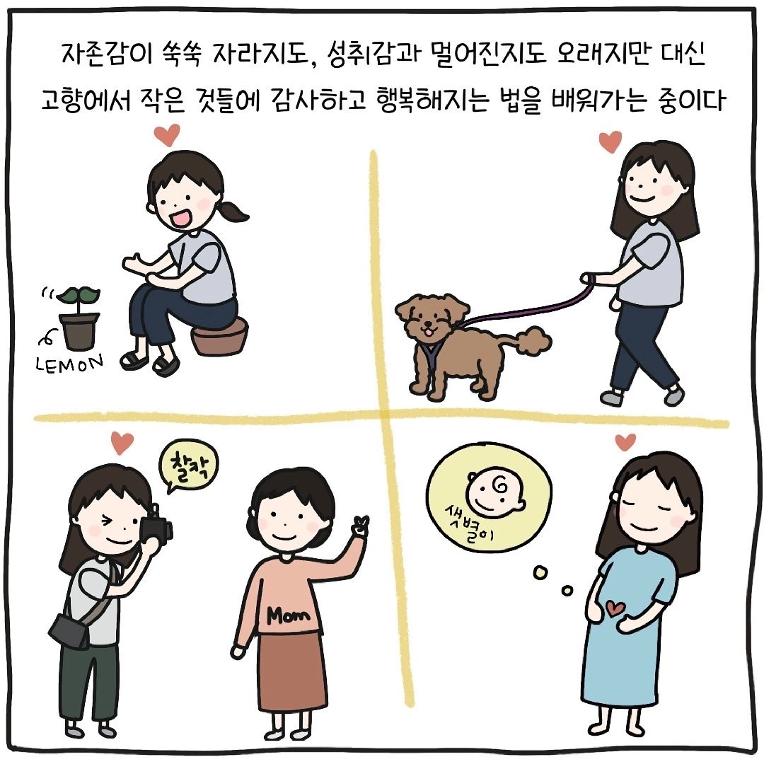 늘 무언가를 하고 계시던 부모님. 특히 결혼을 하고 곁에서 지켜보는 엄마는 늘 무언가를 하고 있는 사람이었습니다. 빨래를 하고 반찬을 하고 청소기를 밀고 저 대신 아기 옷을 모두 빨아서 정리해주는 엄마. 그런 엄마와 함께 20년의 시간을 보냈으니 게으르게 사는 일에 대해 저도 모르게 부정적인 생각을 가지고 있는 것인지도 몰랐습니다. 일을 그만두고 고향에 내려와 처음으로 아무것도 하지 않으며 살고 있는 지금, 마음이 가는 대로 하고 싶은 일들을 하면서 사는 것도 나쁘지 않다는 것을 하루하루 깨닫는 요즘입니다. 지금의 행복하고 따뜻한 여유를 양분 삼아 내년에는 조금 더 좋은 글을 쓰고 그림을 그릴 수 있길 바라봅니다 :)