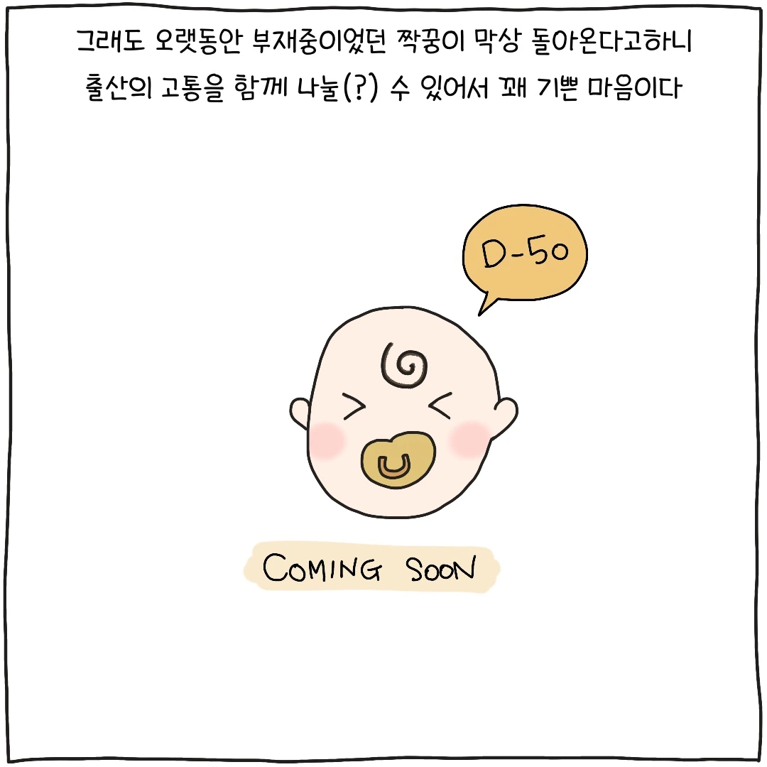 샛별이와 만남을 앞두고 드디어 한국에 돌아온 남편! 지금은 서울에서 자가격리 중인데요, 그래도 그가 돌아왔다는 소식에 출산의 고통을 함께 나눌 수 있을 것 같아 꽤 기쁜 마음이네요. 남은 한 달 동안 이제 산부인과도 함께 가주고 먹고 싶은 것도 많이 사다 주길 바라봅니다.
