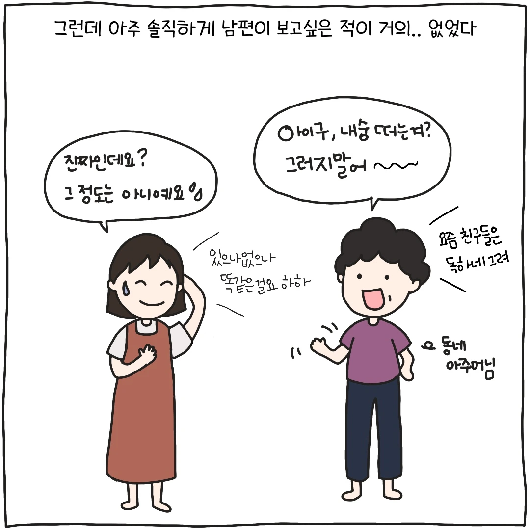 임신 소식을 듣고 한 달 후에 출국을 했던 남편과 홀로 고향에 돌아와 반년을 보낸 저에게 주변 사람들은 늘 걱정과 격려의 응원을 보내주곤 했습니다. 동네 아주머니들은 직접 만든 식혜와 친정에서 따온 신선한 참외, 토마토, 저녁 밥상을 늘 푸짐하게 건네주시며 제 등을 토닥여주셨지만 사실 저는 꽤(?) 괜찮습니다. 남편의 부재에 대해 크게 신경 쓰지 않을 만큼 편안하게 지내기도 했거니와 고향에 돌아와 가족 그리고 친구와 함께 시간을 보내며 남편이 그동안 채워주지 못한 마음의 공백들을 채우는 시간이었거든요.