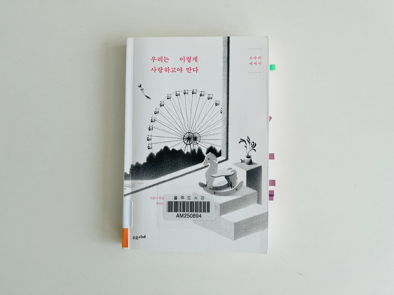 오늘은 마음이 말랑말랑해지고 싶은 날 읽으면 좋을 고수리 작가의 '우리는 이렇게 사랑하고야 만다'라는 책이다. 내가 고수리 작가를 알게 된 것은 상경 후 첫 직장 동료가 선물해준 책을 통해서였다. <우리는 달빛에도 걸을 수 있다>는 그녀의 첫 작품이었는데 제목만으로도 이미 마음이 따뜻해지는 책이었다. 집으로 오는 지하철 안에서 선물 받은 책을 읽으며 마음에 온기가 채워졌던 기억이 어렴풋이 떠오른다. 내가 브런치에 글을 쓰고 있음을 알고 있던 동료는 꼭 고수리 작가처럼 책을 내는 그날을 기다리겠다며 아기자기한 엽서에 편지를 써서 나에게 건네주었더랬다.