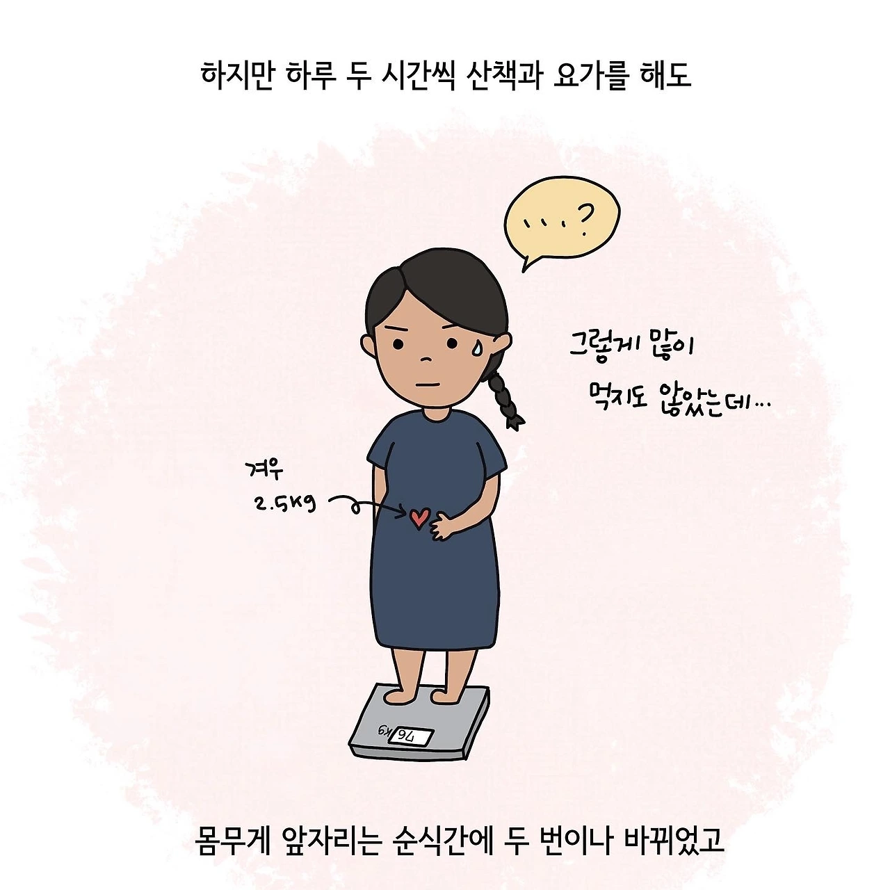워낙 밖순이에 운동을 좋아하는 터라 저에게 다이어트는 조금은 먼 일인 줄 알았습니다. 하지만 임신을 하고 나니 그다지 많이 먹지도 않았지만 살이 슬그머니 찌기 시작했고 몸무게 앞자리가 두 번이나 바뀌고서야 출산을 하게 되었습니다. (출산 직전까지 요가에 강아지 산책까지 병행했더니 20킬로그램이나 쪘지만 임신성 당뇨는 오지 않았답니다!) 주변 사람들이 산후조리원에 가면 자연스럽게 부기가 빠진다고 이야기를 해줬던 터라 출산 후 몸이 돌아오기를 기대했지만 산후조리원 밥이 너무 맛있어서였는지 저만 몸이 그대로였고 그렇게 집으로 돌아와 본격적인 육아를 시작했답니다.