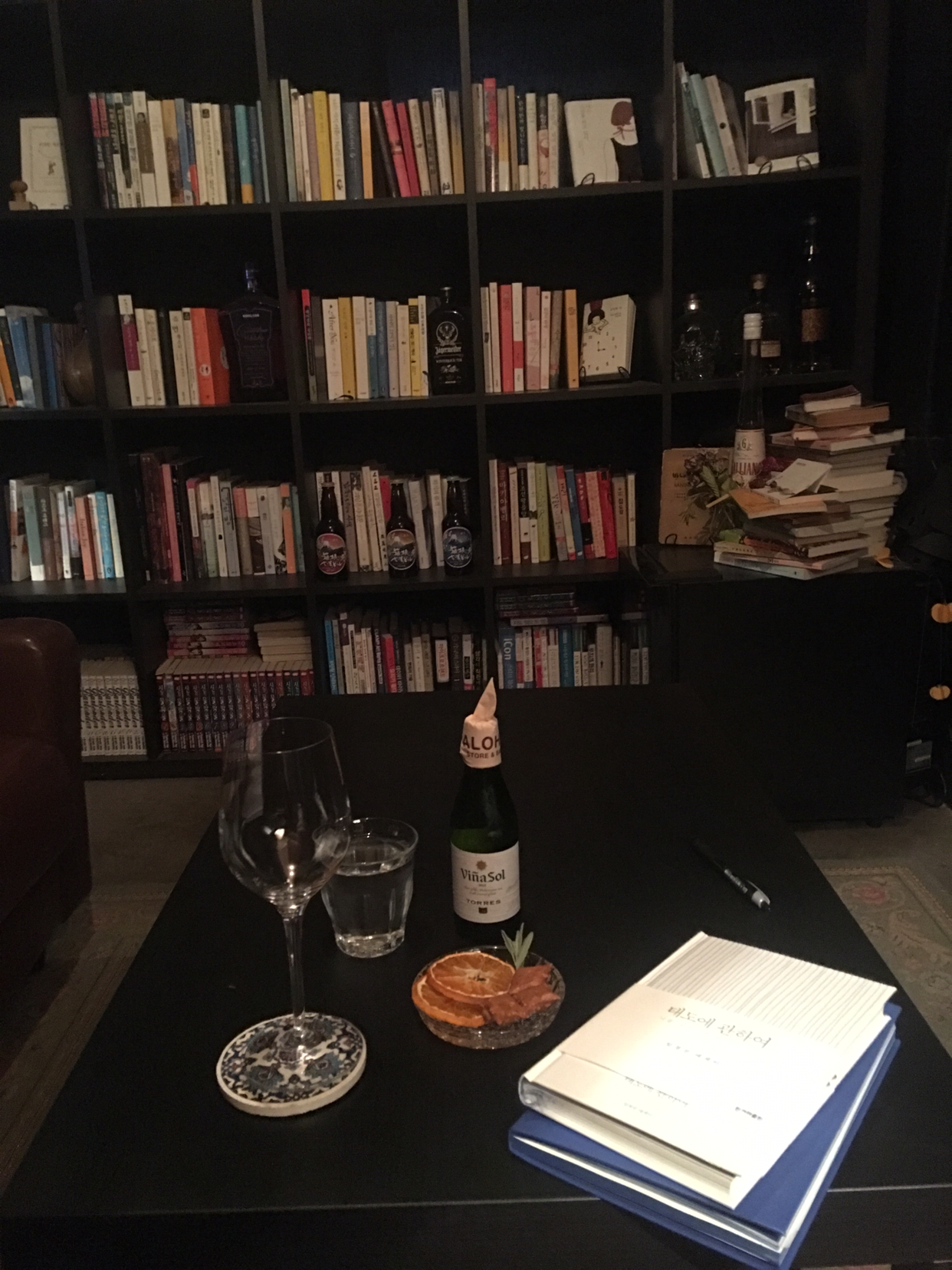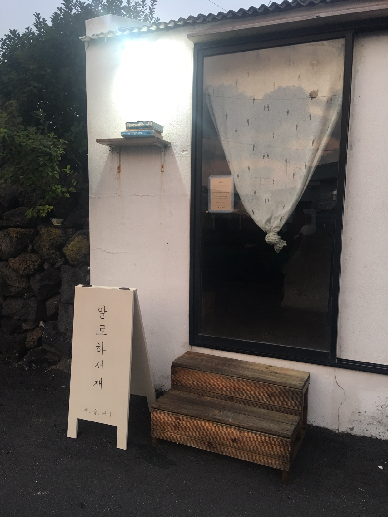 저무는 해를 보내고 비로소 도착한 '알로하서재'는 내가 머무르던 숙소의 호스트가 함께 운영하는 책방으로 가벼운 주류나 커피를 즐길 수 있는 곳이었는데 사색과 휴식의 테마를 가지고 제주로 향했던 나에게는 더할나위 없는 장소가 아니었을까. 지는 석양을 뒤로 하고 들어선 서재는 책을 읽기 좋은 음악과 온도 그리고 편안해지는 아늑한 책 냄새를 담고 있었다. 여행자들을 위한 공간을 선물하고 싶었다는 호스트의 취지처럼 그 공간에서 나는 더할 나위 없는 '휴식'을 취했다. 가장 나다운 모습으로. 화이트 와인과 취향을 저격한 책들 덕분에 하루종일 제대로 먹은 음식 하나 없었지만 가슴 알알히 박히는 아름다운 책 속의 구절들을 곱씹으며 가득 채워진 마음으로 마감 시간까지 그 공간을 즐길 수 있었다.