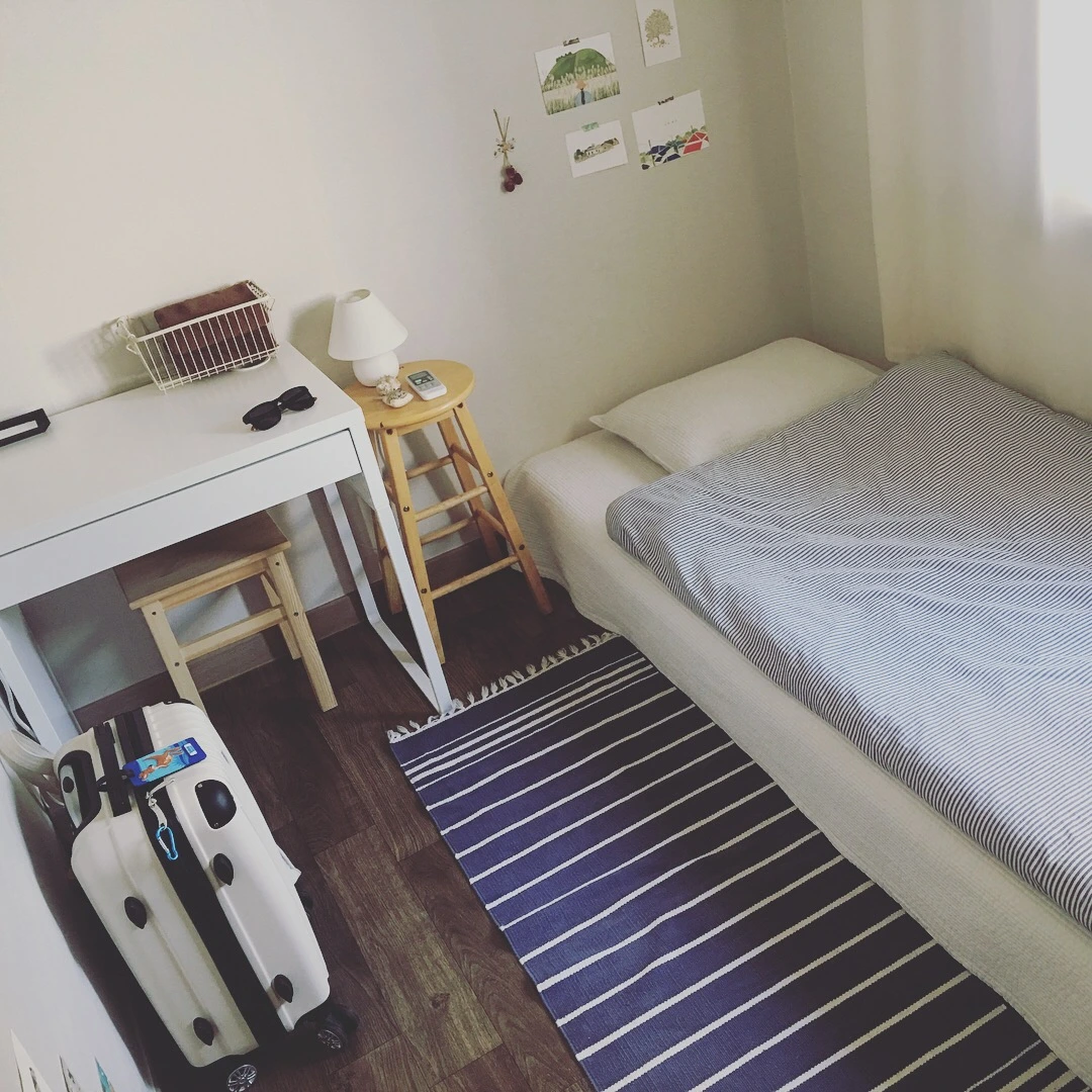 낯선 사람의 방에 머무는 일을 꽤 좋아하는 편이다. 나와는 다른 삶을 사는 이의 일상을 공유하는 일은 그 누군가의 삶과 내 삶의 모습이 그리 다르지 않음을 깨닫는 일이고 그 속에서 삶의 모습은 궁극적으로는 비슷하게 닮아있다는 것을 알게되는 위로의 과정이기에. 낯설지만 따뜻한 공간에 내가 녹아드는 그 묘한 1분의 줄다리기 같은 감정을 즐긴다. 특히나 이번에 머물렀던 공간은 더더욱. 제주스러운 돌담집의 미닫이 문 너머로 시작되는 고즈넉한 마당과 한 켠에 자리한 작은 연못은 제주를 사랑하는 신혼부부의 마음이 담겨있는 공간처럼 보였다. 현관문을 열고 들어가 안내된 1인실의 방은 홀로 여행하는 여행자를 위한 과하지 않은 인테리어였고 잘 개어진 이불과 벽에 붙어있는 엽서까지도 무엇하나 지나치지 않고 따스했다. 폭염경보가 올해 처음으로 내렸다는 소식을 이미 들으셨는지 방은 시원한 에어컨이 가동되고 있던 상태였는데 방에 들어서자마자 녹아버리는 몸을 방바닥에 뉘이고서는 오래오래 창 밖의 햇살을 바라봤다.