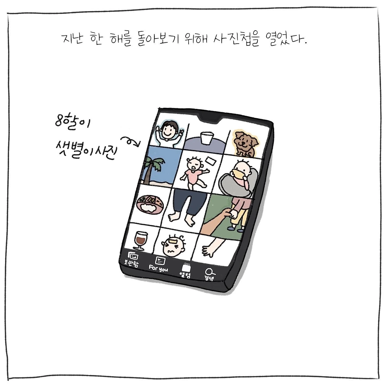 케케묵은 한 해가 가고 새로운 해가 밝았습니다. 아이가 없었을 땐 연말이면 보고 싶은 사람들과의 약속들로 늘 설레곤 했었는데 엄마가 되고 나니 연말을 느낄 겨를도 없이 시간이 흐른 기분입니다. 한 해동안 무엇을 했는지, 어떤 점이 부족했는지, 목표로 했던 것들 중에서 어떤 것들을 이루고 어떤 것들을 이루지 못했는지를 채 반성하기도 전에 새해를 맞이하게 되니 올해는 계획 없이 보내봐야겠다는 생각이 들기도 합니다. 그래도 12월 31일 낮에는 남편에게 아이를 맡기고 혼자 카페에서 커피를 마실 여유를 가질 수 있었습니다. 그리 길진 않았지만요. (긁적..) 오랜만에 혼자 그리고 누구의 방해도 받지 않고 한 해동안 찍었던 사진첩을 열어볼 여유가 생겼지요. 1월부터 12월까지 빼곡히 담긴 사진첩을 보면서 샛별이가 얼마나 많이 컸는지를 새삼 깨닫게 되었고, 사진첩의 8할이 샛별이로 가득 찼다는 사실을 또 우리가 그동안 참 많은 도전을 해왔음을 알게 되었습니다. 나이를 먹으면 새로운 것에 도전하는 일이 점차 어려워진다고 들었는데 그래도 아직 우리는 청춘의 시간을 보내고 있노라며 남편에게 심심한 위로를 건네보는 바입니다.