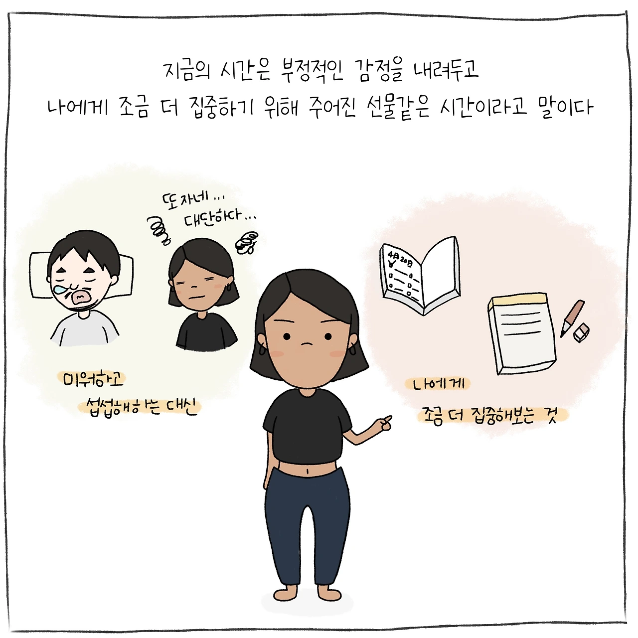 신혼이었을 땐 어렴풋이 짐작만 하던 ‘독박 육아’의 고단함은 현실이 되자 생생하게 느껴지기 시작했습니다. 아이가 잠들지 않는 이상 ‘쉴 만한 여유’라고는 없는 시간들을 보낸 덕분이었지요. 다른 아이들에 비해 더 활동적이고 에너지 넘치는 샛별이 덕분에 살이 오를 낌새는 보이지가 않습니다. 쉴 새 없이 어딘가에 올라가고 책꽂이에 꽂힌 책과 상자에 담긴 맥포머스를 모두 쏟아내야 직성이 풀리는 19개월의 어린 아들은 늘 해맑기만 합니다. 오랜 고민 끝에 한국에 좀 더 머물기로 마음을 먹고, 저 역시도 제 삶을 찾기 위해 샛별이의 어린이집 상담과 등록을 마쳤습니다. 이번 달은 샛별이의 어린이집 적응 기간이라 점심을 먹고 돌아오는 짧은 일정이지만 그럼에도 불구하고 저에게 주어지는 두세 시간의 여유가 얼마나 감사한 지 모릅니다.