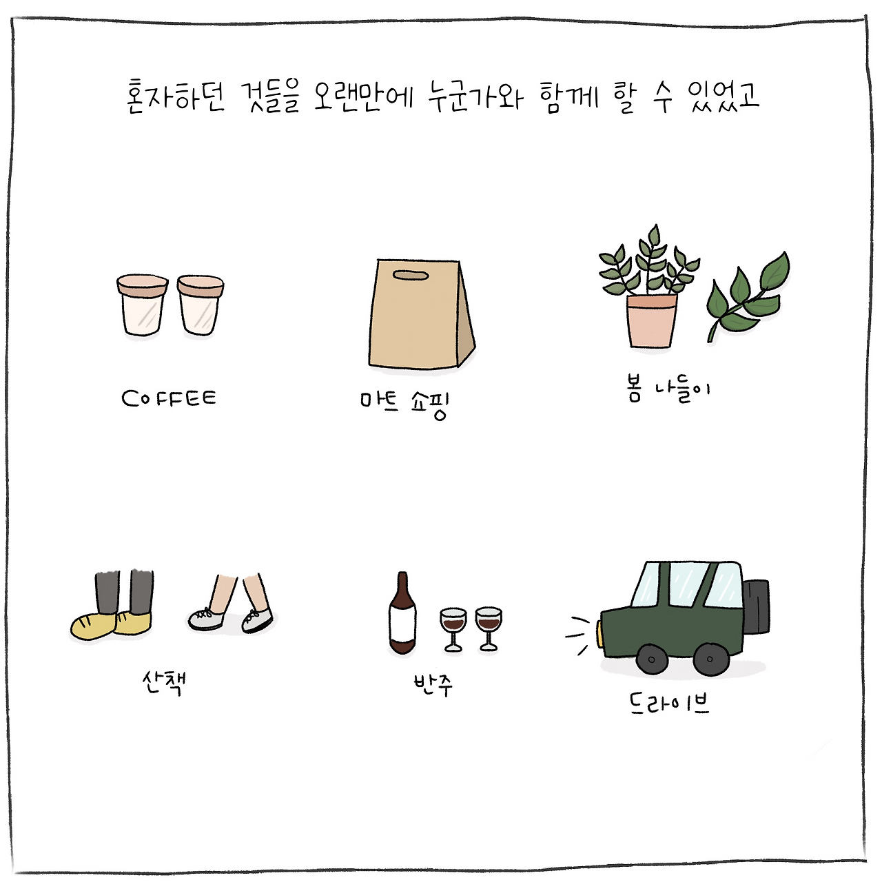남편이 얼마 전 한국으로 짧은 휴가를 다녀갔습니다. 롱디로 지낸 지 두 달 반만의 일이었는데요, 아이는 그새 훌쩍 자라서 남편을 깜짝 놀라게 하고 말았지요. 일주일의 시간은 무척이나 짧아서 한국에서 해결해야 되는 것들을 해치우고 나니 금세 작별인사를 할 시간이 되었습니다. ‘그만하자’는 말로 시작된 큰 싸움 이후 얼굴을 처음 보는 거라 부부임에도 어색한 적막이 흐르더군요. 세상에서 가장 가까운 사람이라 여겼던 이가 가장 멀게만 느껴졌던 시간들이었습니다. 그의 출국 하루 전, 부부상담으로 휴가의 마침표를 찍고 이른 새벽, 그를 데려다주러 김해공항으로 향했습니다. 상담을 하며 선생님과 나누었던 이야기들, 서로가 가진 생각들을 머금고 공항으로 향하는 길은 꽤 오래 적막이 머물렀습니다.