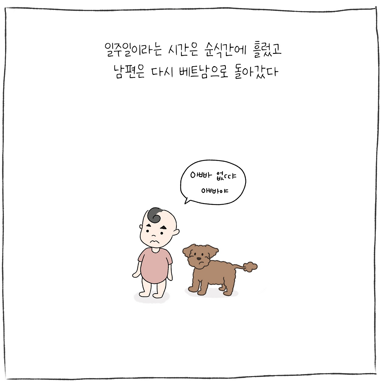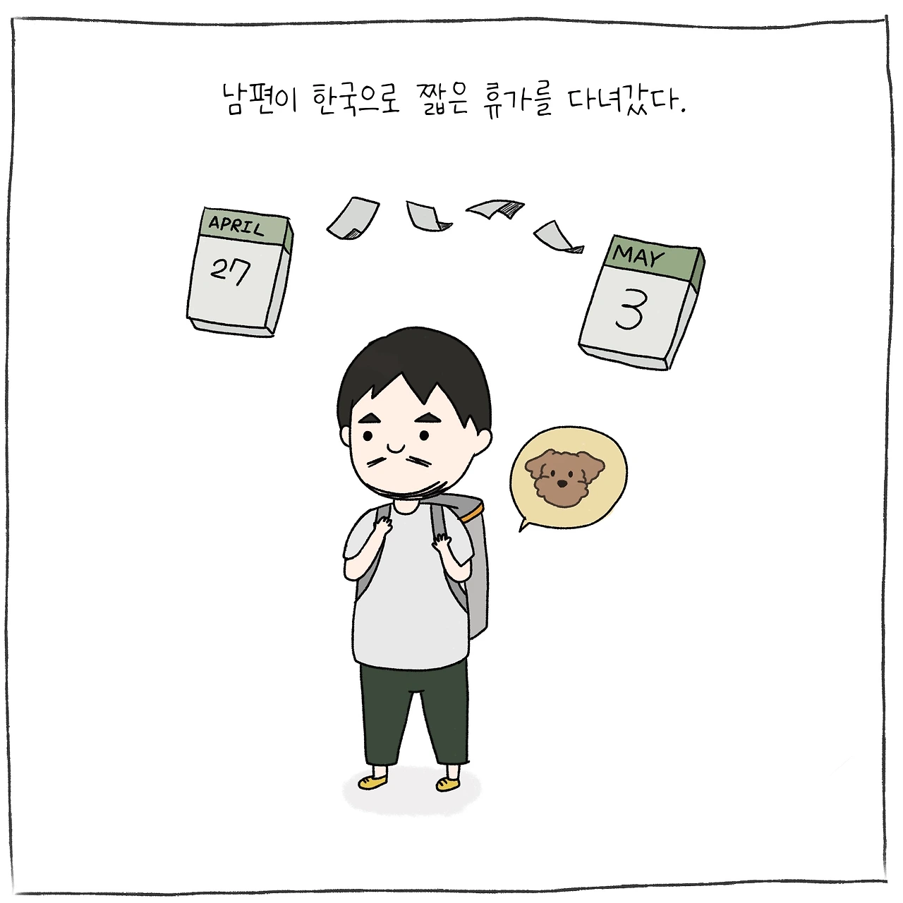 출국을 앞둔 사람도, 남편을 공항에 내려주고 집으로 돌아오는 저도 각자의 이유로 무거운 마음이었을 겁니다. 남편을 보내고 며칠 동안 아무도 만나지 않고 연락도 받지 않은 채 오래간만에 찾아온 우울에 한껏 빠져 지냈습니다. 누군가 툭-하고 건드리기만 해도 눈물이 쏟아질 것 같았거든요. 그러는 동안에도 육아는 늘 변함없었고 매일 해야 하는 일들은 쌓여갔습니다. 청소기를 밀고, 바닥을 닦고 밥솥에 밥을 하고 아이를 등하원시키면서 조금씩 일상이 돌아오기 시작했습니다. 비바람이 멈춘 월요일, 며칠째 어두컴컴했던 하늘이 거짓말처럼 개였습니다. 주말만 해도 그칠 겨를 없이 비가 쏟아지고 또 쏟아지는 시간들이었는데 말이죠. 강아지와 함께 산책을 하며 하늘을 올려다보다, 우리도 지금의 시간을 이겨내고 언젠가는 분명히 따뜻한 봄을 맞이하게 될 거라는 생각이 들었습니다. 짧은 안녕을 통해 우리가 조금 더 성숙한 가족이 되길 바라봅니다.