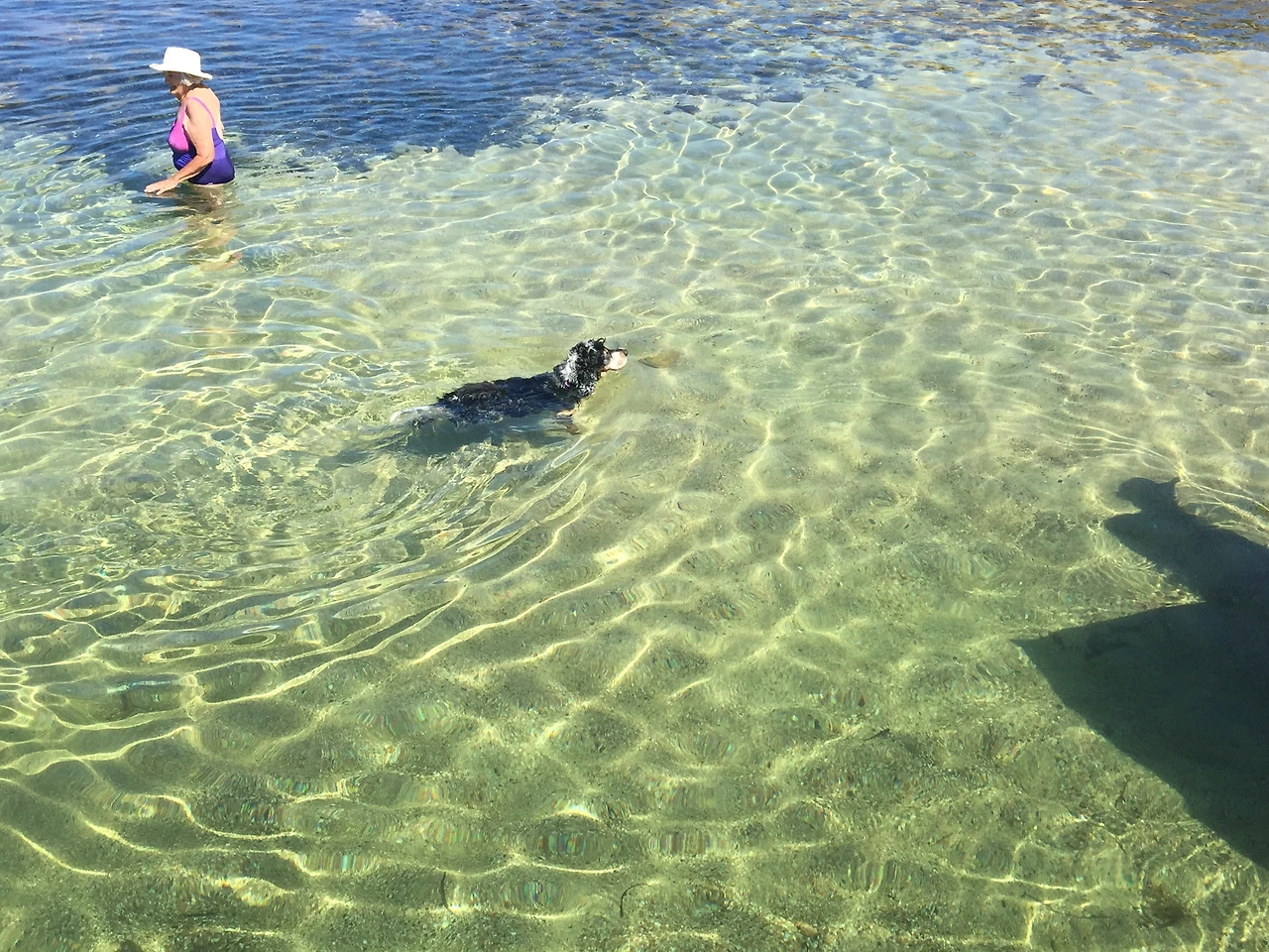 반려견과 바다수영을 즐기는 할머니