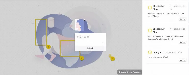 제시를 생각하게 만드는 사람들이 만든 서비스. 영겁의 고통의 굴레에 빠져 사는 디자이너분들을 위한 project management/communication 툴입니다. "화려하지만 심플하게" 디자인해달라는 클라이언트의 언어를 task level/action item으로 정리하는 것을 돕습니다. 시각적 작업물에 구체적인 feedback, 요구사항을 적도록 합니다.