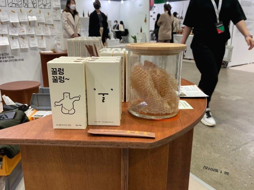또 웃음짓게 만들었던 디자인은 꿀건달! 곰도 꿀렁꿀렁 춤추게 만드는 꿀을 귀여운 곰 패키징에 담아서 판매한다. 패키징이 귀엽고 꿀렁꿀렁 이라는 소리가 놀이적인 요소를 줘서 다들 한번씩은 구경하고 가던 부스!