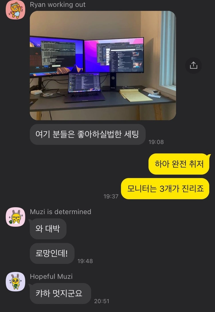 제 글을 좋아해 주신 분들 정말 감사합니다 아직도 안읽은 분들을 위해 카카오 단톡방이나 인스타그램 스토리나 트위터에 마구마구 공유해줘요 !! IT 종사자들은 바쁩니다. 그래도 본인들이 선택한 길이니까 스스로는 힘들어도 그렇다 치는데 그분들 배우자나 연인은 도대체 무슨 죄 오늘도 이해하지 못하는 IT 인을 품어주시는 분들 그저 잘부탁드립니다,, 그래도 누구라도 있는 사람 부럽다~~!
