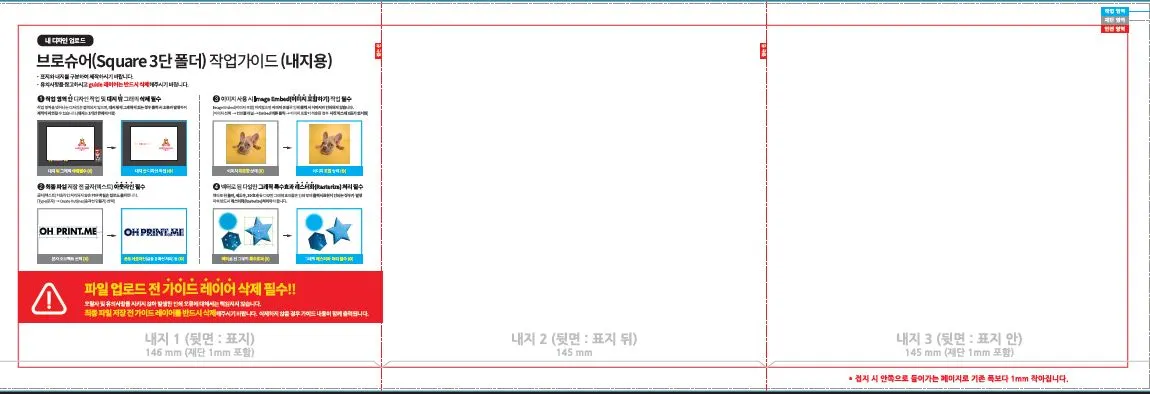 제일 중요한건 AI와 PDF로 가이드가 나왔다는것! 사실 오랜만의 인쇄디자인이라 마진을 얼마정도 잡고 해야될지 부담도 됬고 (이게 인쇄에서 제일 힘든듯 ㅠㅠㅠ) 인쇄 기기가 파일이 들어갔을때 설정에 따라 이미지 빼고 인쇄되거나 인쇄가 안되거나 하는 경우들이 있어서 사전에 오류를 피해갈수 있는 경우의 수를 따져야 했는데 오프린트미에서 가이드를 줘서 그대로 템플릿에 입혀서 보내기만 하면 되기때문에 여기로 선택했다