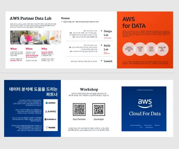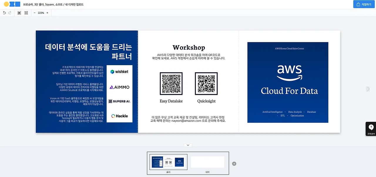 일단 디자인툴 다룰 수 있는 사람이 있다고 해서 브로셔를 다 혼자 만드는건 아니다. (이거 보시는분 절대 한명한테 시키지마세요 그러면 진짜로 퇴사합니다) 총 6개 면에서 내가 앞표지 뒷표지를 맡고, 나머지 4개 면에 들어갈 콘텐츠를 같이 만드는 다른 팀원분들에게 부탁했다.