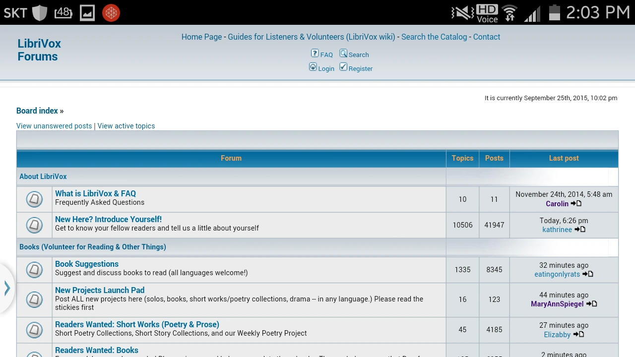 만약 여러분이 통과하셨다면 1일 후 다시 메일이 올 것이다. 거기에서는 여러분의 계정이 통과되었으며, 여러 가지 신입 유저 팁들을 알려주는 링크들을 보내주게 될 것이다. 이제 LibriVox 포럼으로 가 보면 여러분은 이제 로그인할 수 있을 것이다.