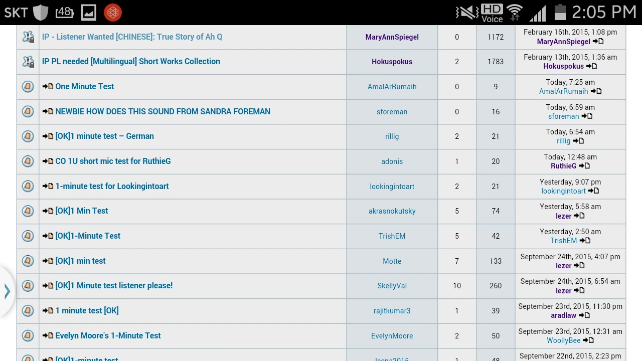 이 세팅들을 다 갖추고 있다면 이제 다음 단계로 넘어가면 된다. LibriVox 포럼 페이지 중 'Listeners and Editors Wanted'라는 메뉴가 있을 것이다. 이 곳에서 여러분들은 1분 테스트를 올리고 검사를 받을 수 있다. 이제 1분 테스트와 편집, 그리고 업로드하는 방법을 알려드리겠다.