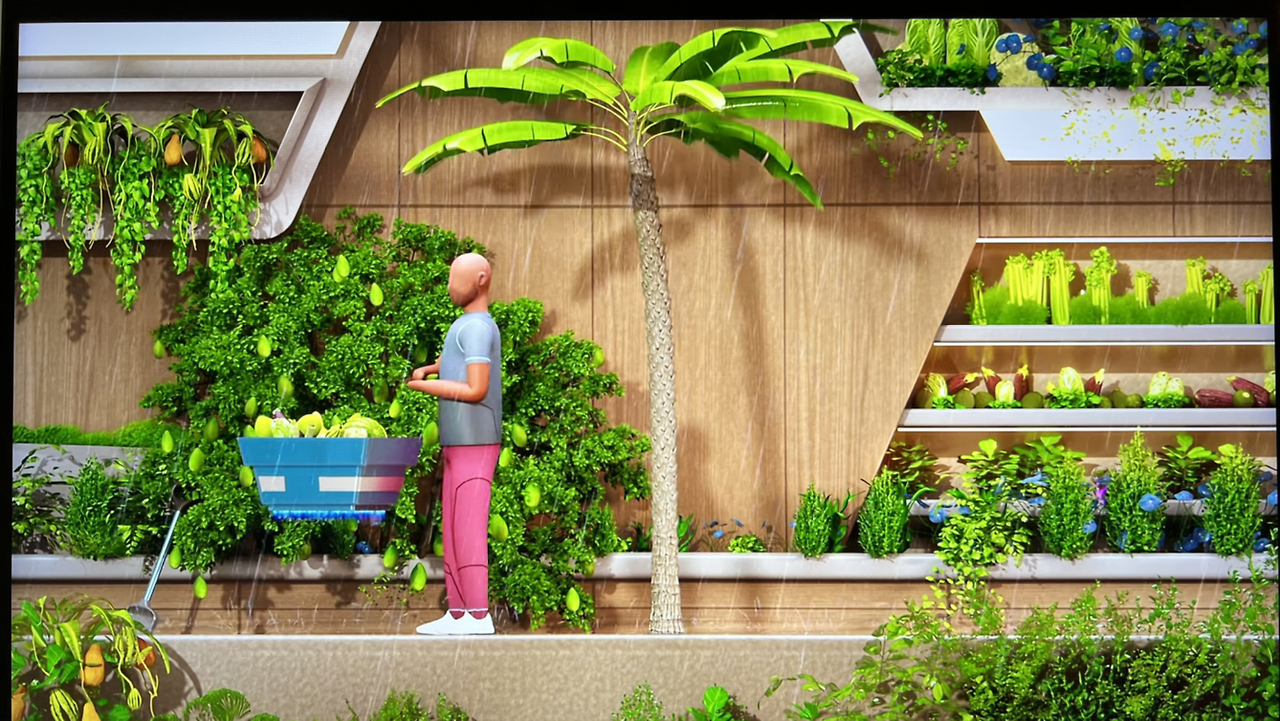 미래의 어느 아파트를 상상하는 장면으로 시작하는데 나무는 그저 광합성의 역할만 해줘도 이롭기 짝이 없는데 모기나 식물에 해로운 해충을 없애주는 화학물을 내뿜기도 한다. 유전자 조합으로 가능해진다는 주장이다. 아파트 층층마다 가로수가 있고, 생체발광인 해파리 같은 데서 유전자를 발췌해서 식물에 넣어서 나무가 가로등이 되는데 아바타에 나오는 식물처럼 자체발광을 한다.