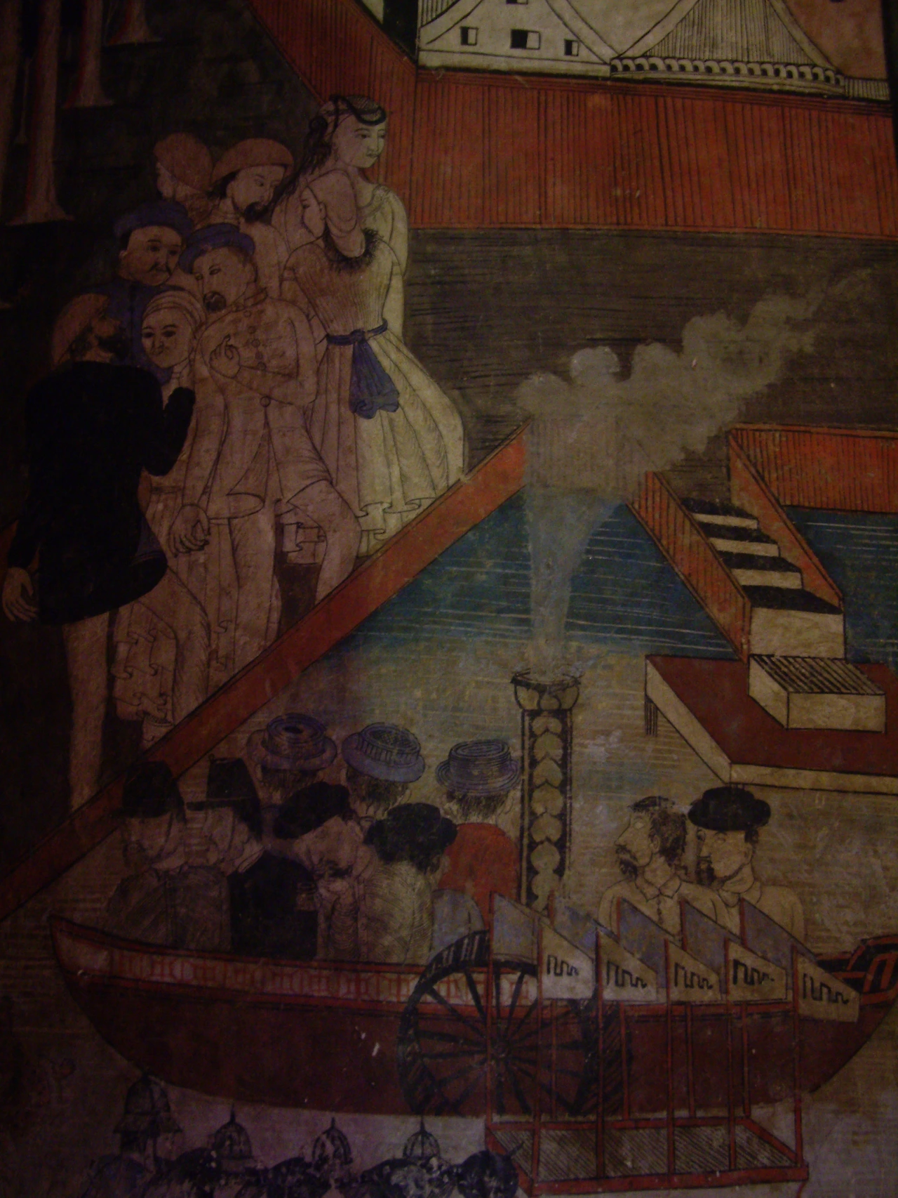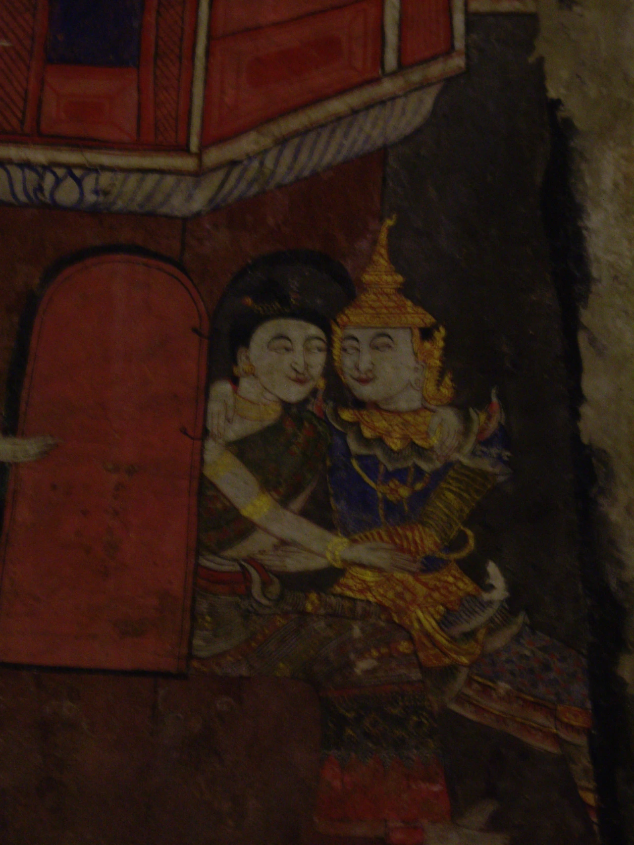 '왓 푸민'의 벽화들. 1800년대 후반에 그려졌다고 하는데, 첫번째 그림을 보면 서양 사람들이 등장한다. 세번째 그림은 이슬람 사람들. 당시 난의 무역이 꽤 번창했음을 알 수 있다.