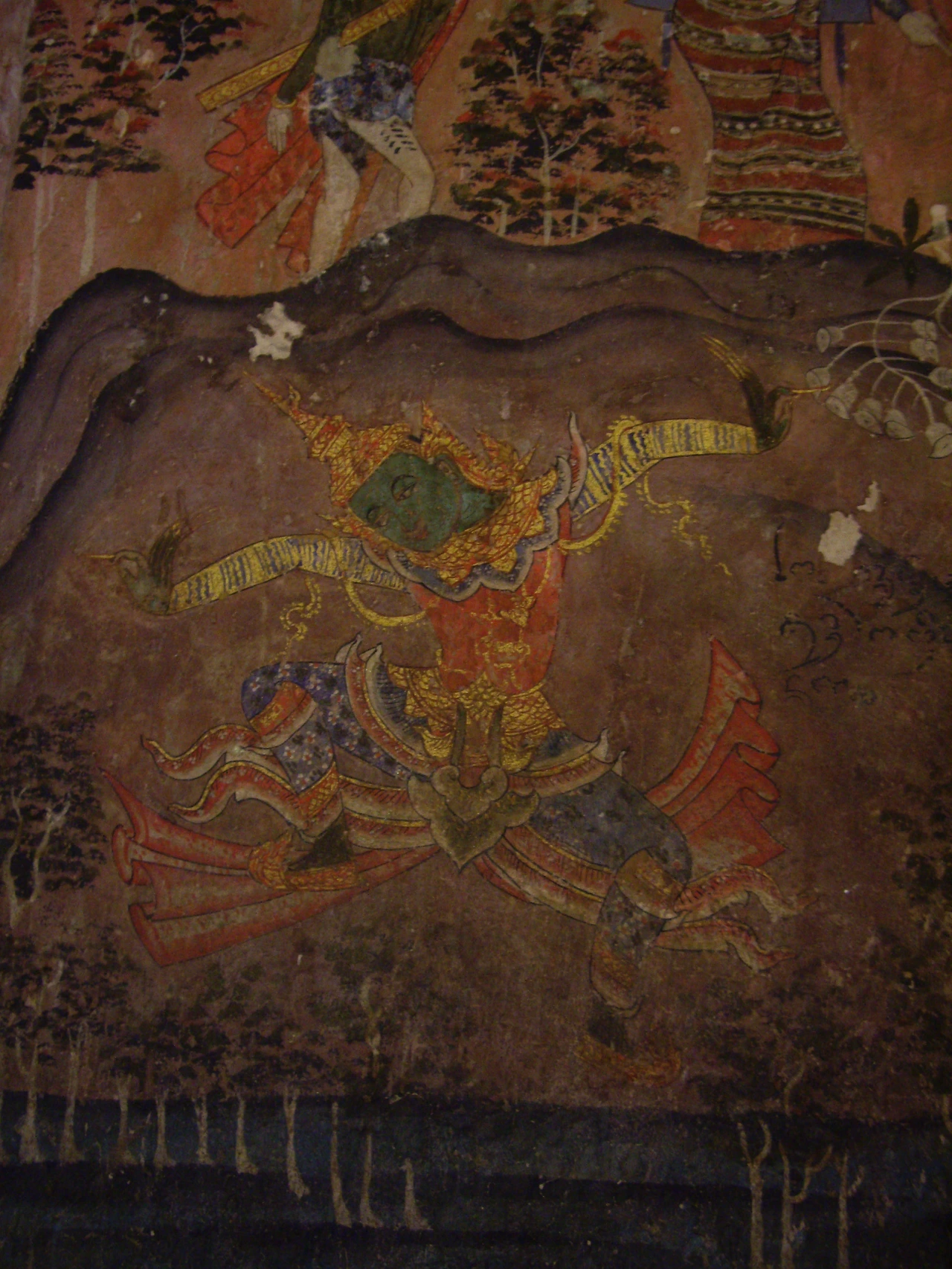 왓 푸민의 벽화들은 생각보다 다양하고 다이나믹했다. 태국 전역을 여행하면서 수십군데의 사원에 가 봤지만, 이런 스타일의 그림은 처음 접하는 것이어서 신선하고 신기했다.