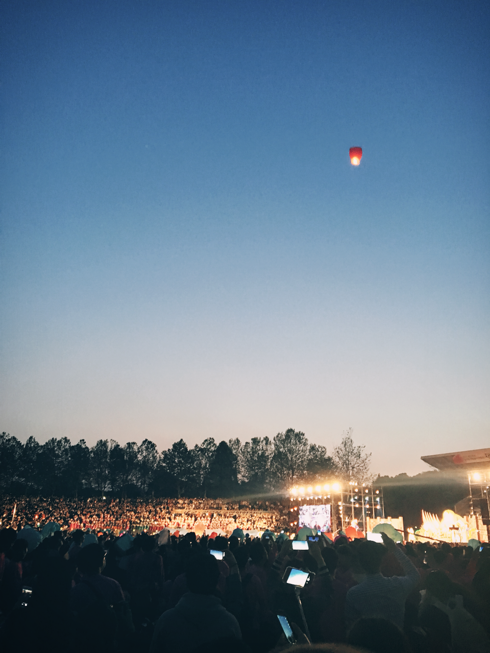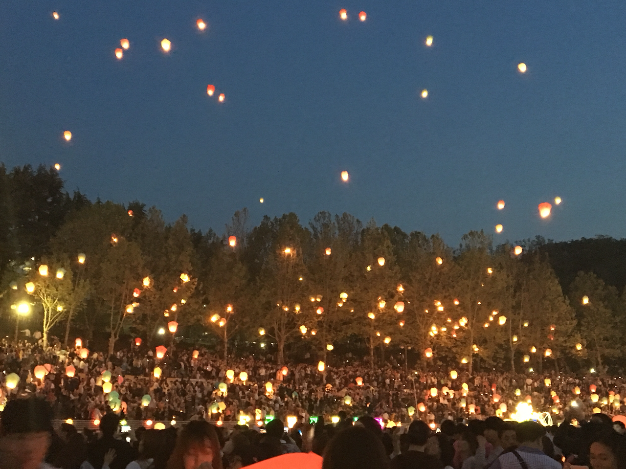 신호탄처럼 떠오른 풍등 하나에 경기장에 모여있던 모든 사람들이 환호성을 질렀다. 준비를 마치고 기다리고 있던 중앙 객석에서 속속들이 등을 띄워올렸다.