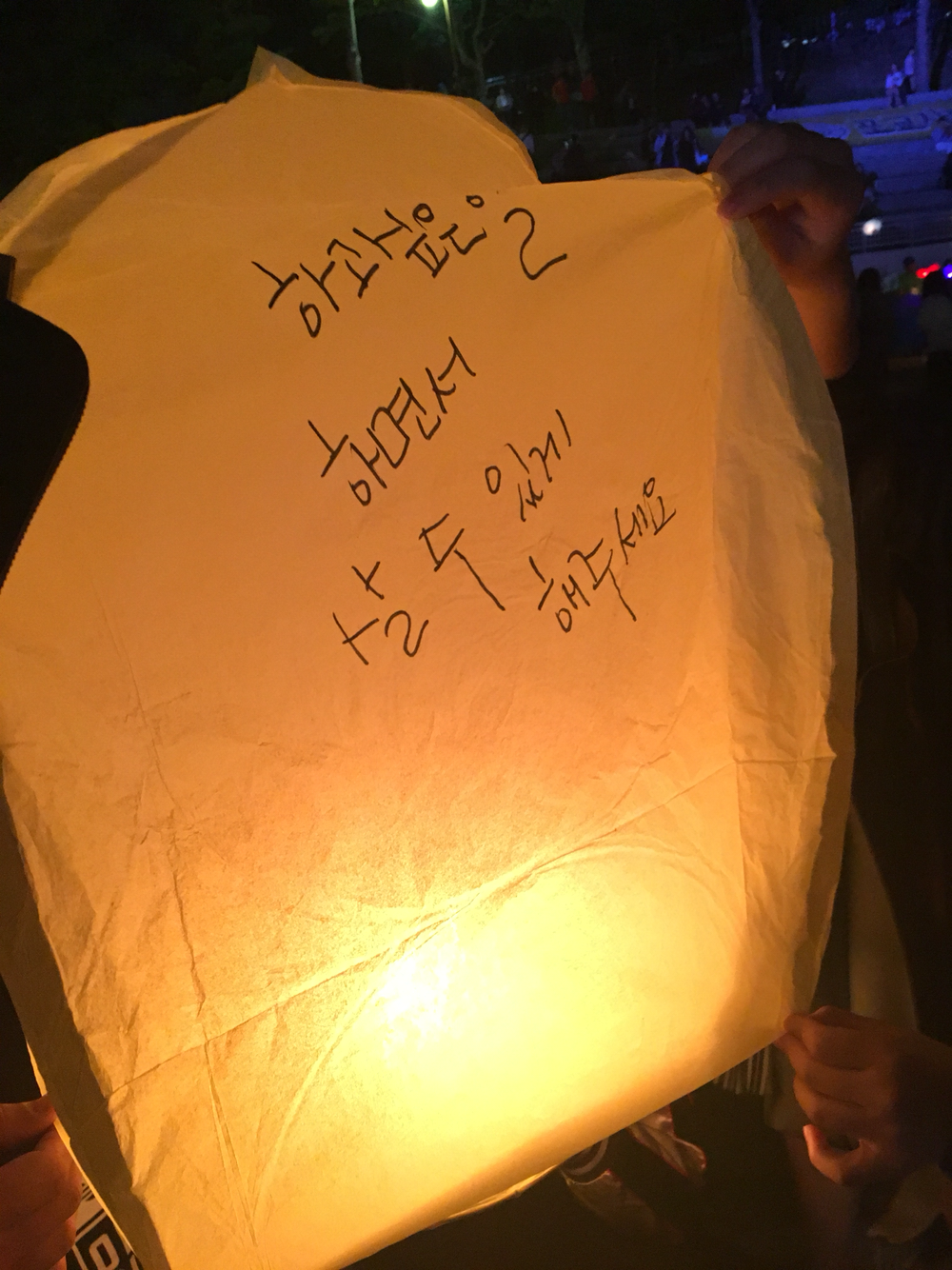 "풍등은 결국 하늘에서 불타 사라지잖아. 내 희망은 불타버리지 않았으면 좋겠어."