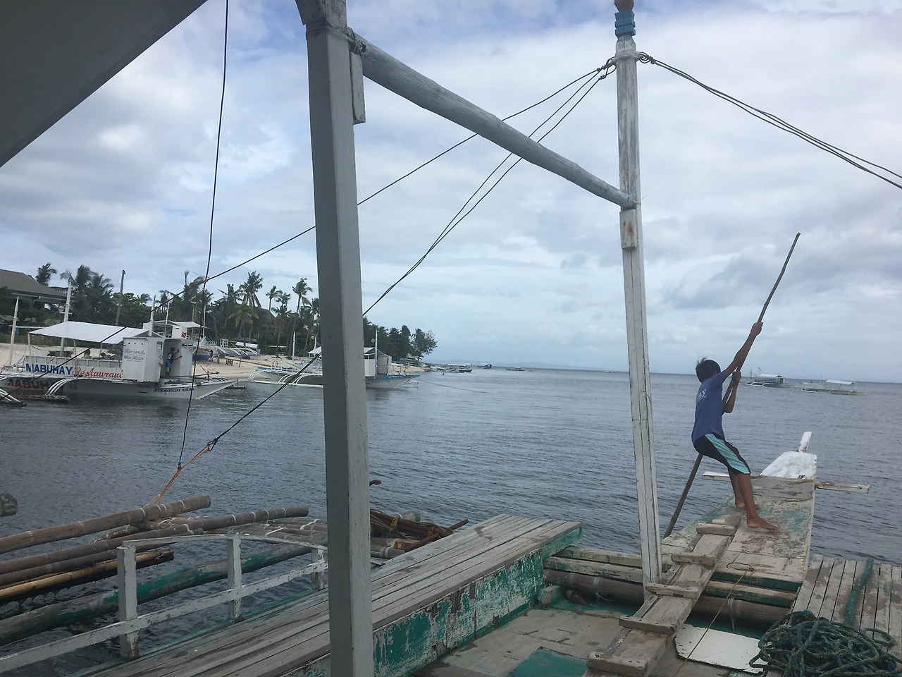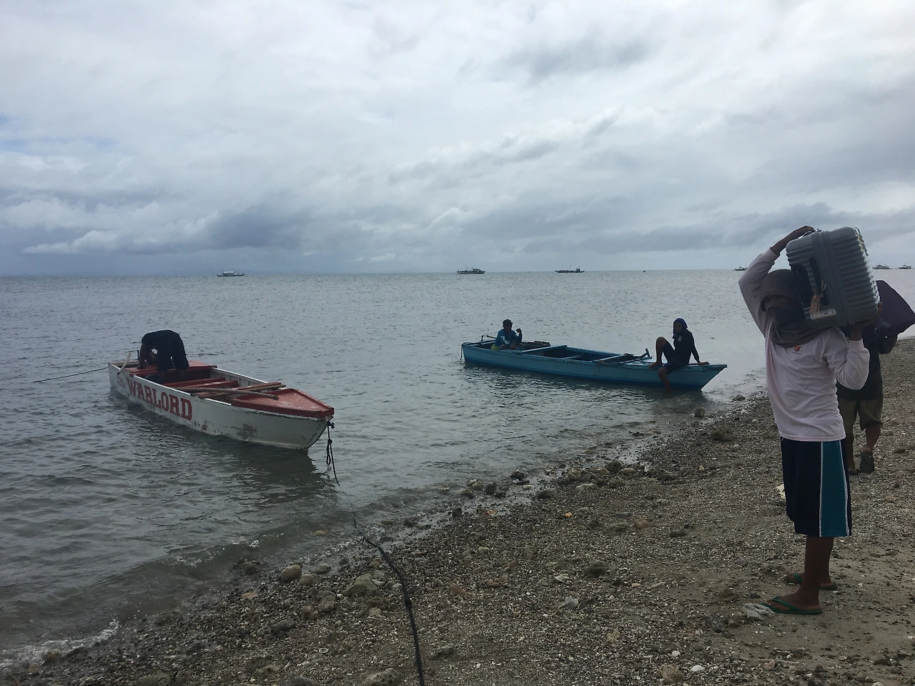 다행히 십여분을 삐걱이며 노 저어가던 플랫보트는 곧 수평선 근처에 있던 커다란 방카보트 근처에 멈춰 섰다. 나중에 알고 보니 간조(low tide) 때라 선체가 깊은 방카보트가 해변가에 배를 댈 수 없어 플랫보트로 사람들을 실어 날랐던 것이라고 한다. 그런데 사전에 아무런 정보가 없었던 우린 이 배를 타고 망망대해를 건널 것이라는 어이없는 상상을 했던 것.