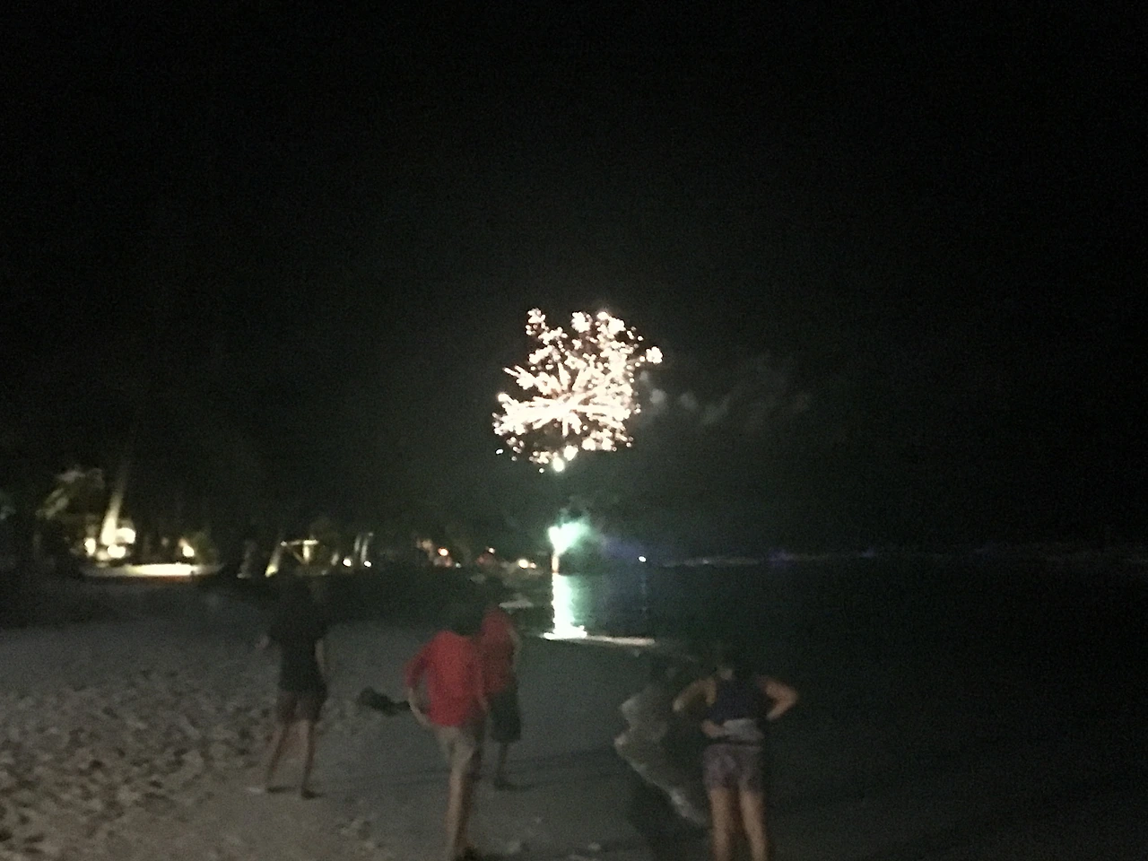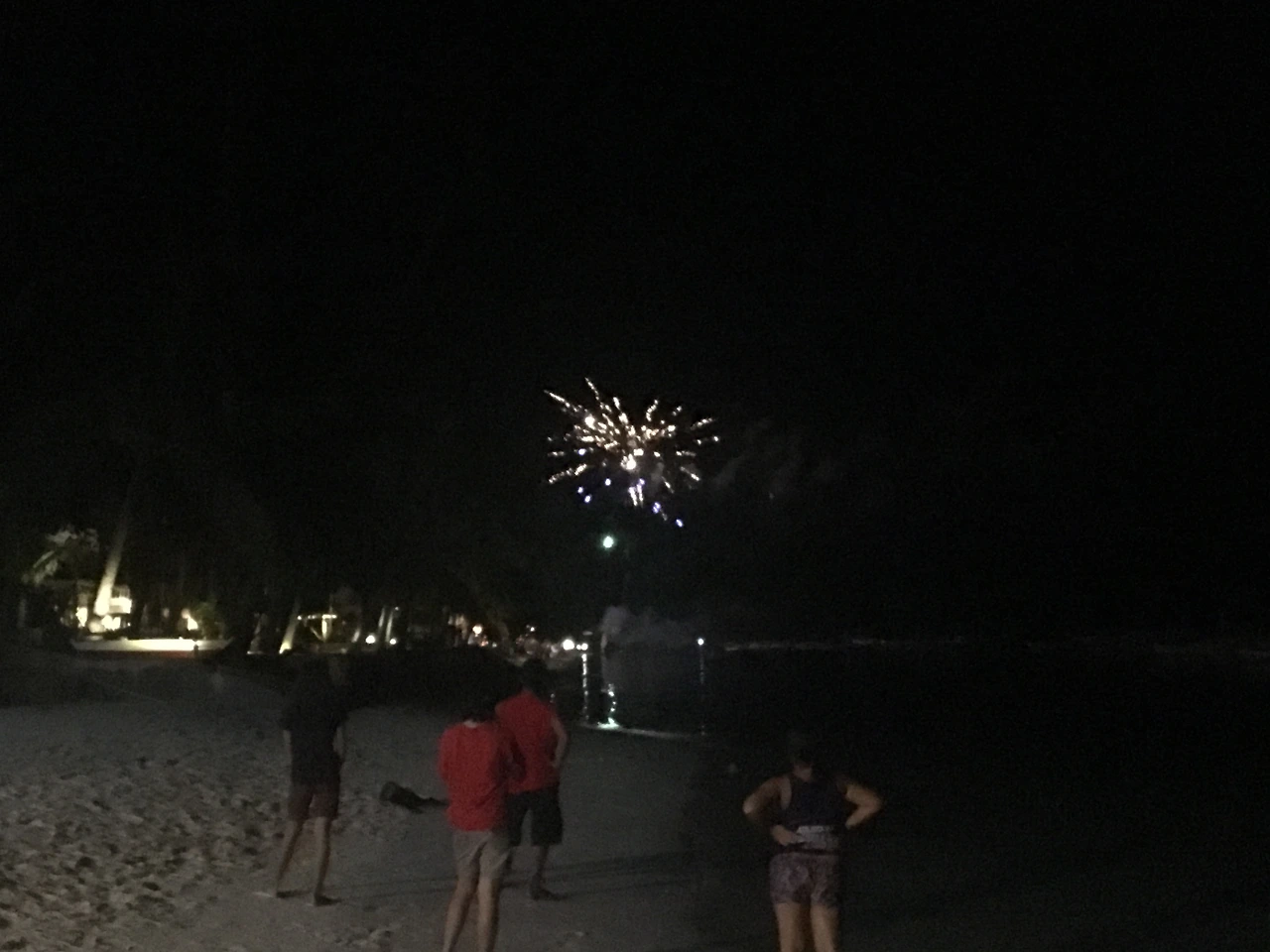따뜻한 날씨, 철썩이는 파도 소리, 발가락 사이로 곰실거리는 고운 모래, 함께 해변에서 불꽃을 구경하는 서너명의 필리핀사람들...