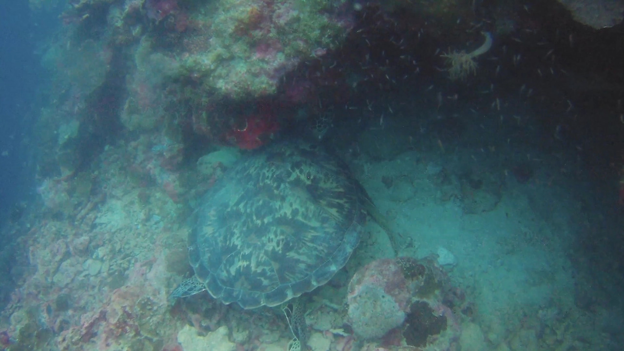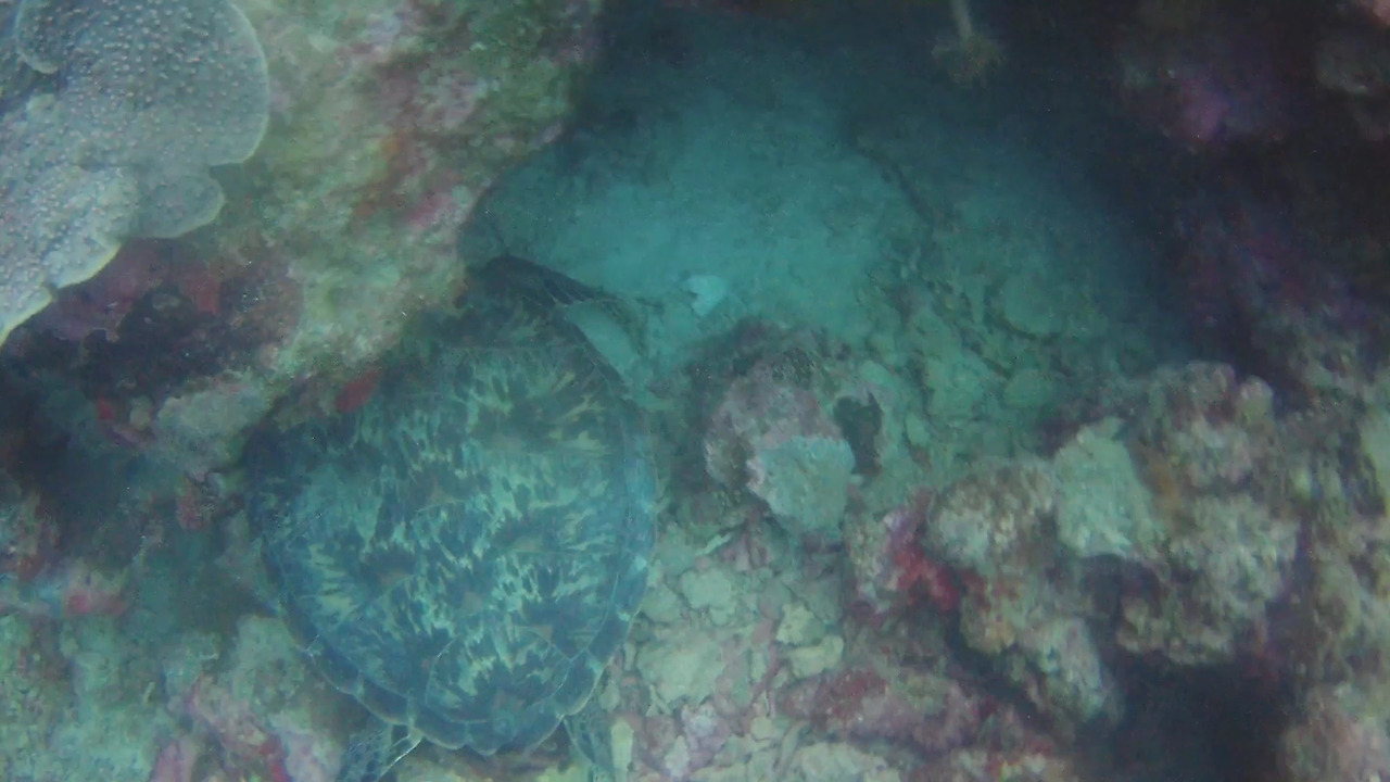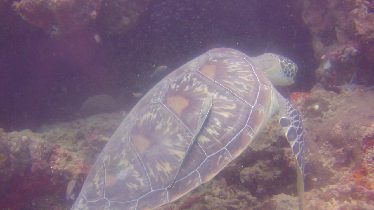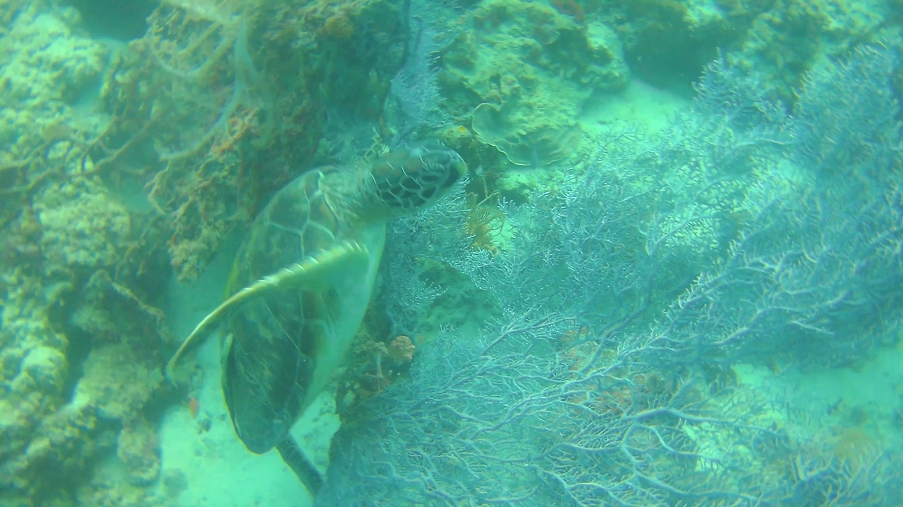 새해 마지막날엔 부채산호에 걸려 버둥대는 거북이를 만났다. 몸집을 보아하니 아직 나이가 많지 않은 녀석인 것 같은데, 그물처럼 얼기설기 얽힌 부채산호 사이에 섣불리 들어섰다가 발이 걸린 모양이었다. 이때만큼은 현지 가이드가 '촉수엄금'의 룰을 어기고 다가가 거북이 발을 산호에서 꺼내주었다. 녀석은 산호에서 벗어나기가 무섭게 쏜살같이 수면으로 숨을 쉬러 날아갔다.