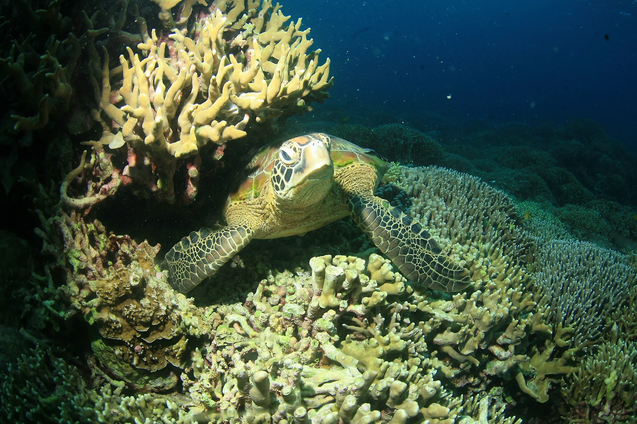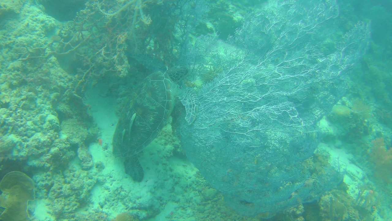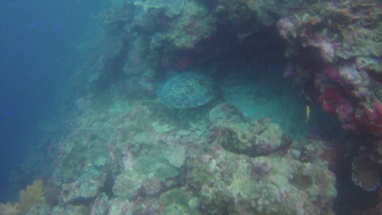 새해 마지막날엔 부채산호에 걸려 버둥대는 거북이를 만났다. 몸집을 보아하니 아직 나이가 많지 않은 녀석인 것 같은데, 그물처럼 얼기설기 얽힌 부채산호 사이에 섣불리 들어섰다가 발이 걸린 모양이었다. 이때만큼은 현지 가이드가 '촉수엄금'의 룰을 어기고 다가가 거북이 발을 산호에서 꺼내주었다. 녀석은 산호에서 벗어나기가 무섭게 쏜살같이 수면으로 숨을 쉬러 날아갔다.