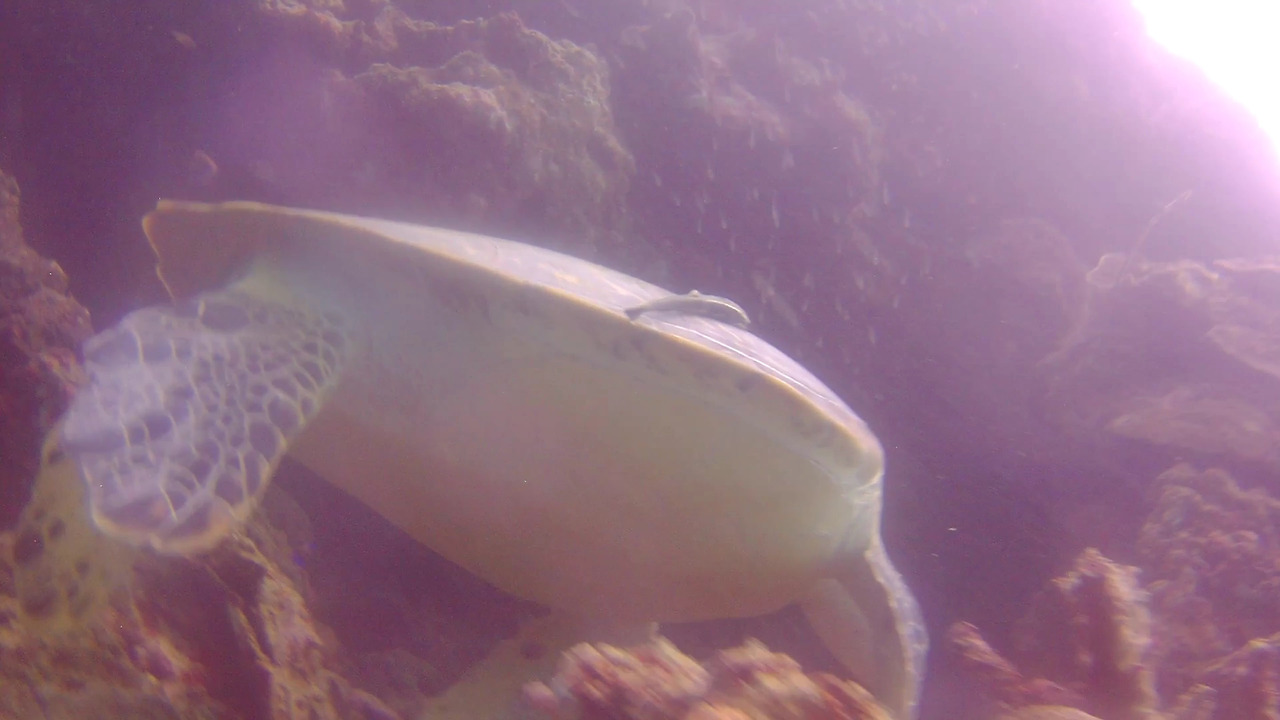 기가 막히게도 빨판상어를 데리고다니는 녀석들은 등이 깨끗한데, 외로이 홀로 다니는 녀석들은 꼭 등딱지가 물이끼나 따개비 같은 것들로 어지럽혀져 있다. 등딱지만 봐도 그 거북이의 성격을 지레짐작할만 하다.