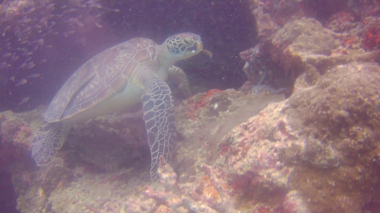 어류와 달리 아가미가 없는 거북이는 일정 시간이 지나면 물 위로 숨을 쉬러 올라가야 한다. 제때 숨을 쉬지 못하면 죽는다. 현지 가이드 말로는 어린 거북이들이 바위틈 같은 곳에 걸려 질식사 하는 사고도 가끔 발생한다고 한다.