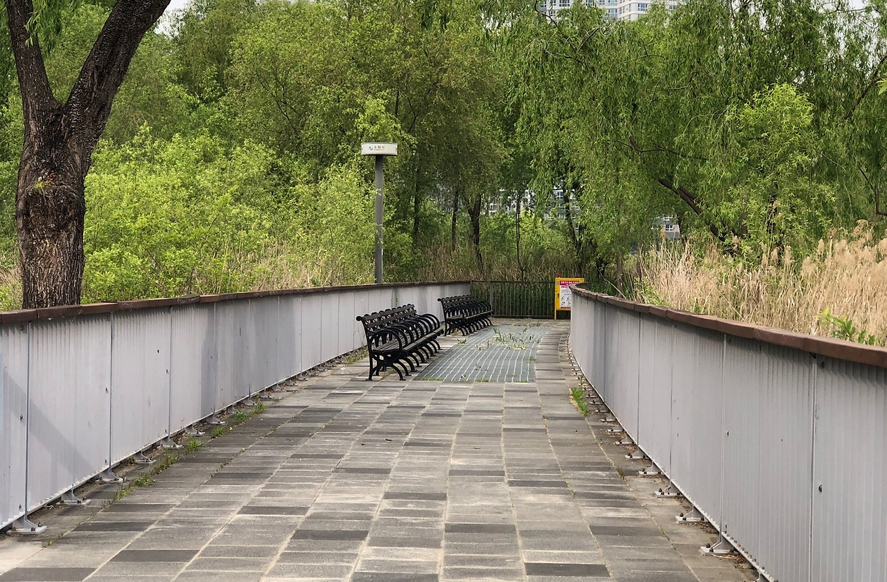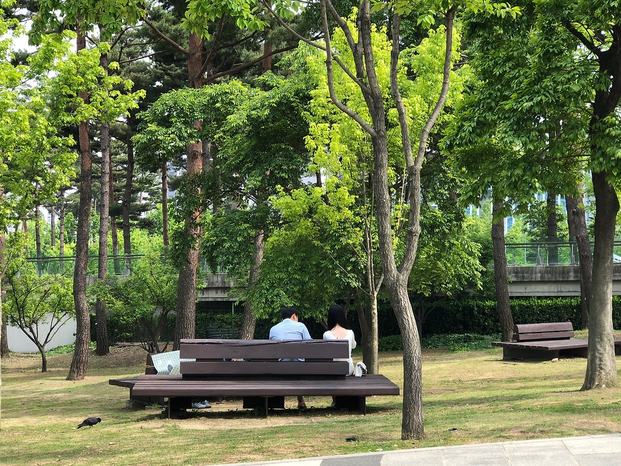 그 옆 벤치에는 연둣빛 청춘이 앉아 있다.