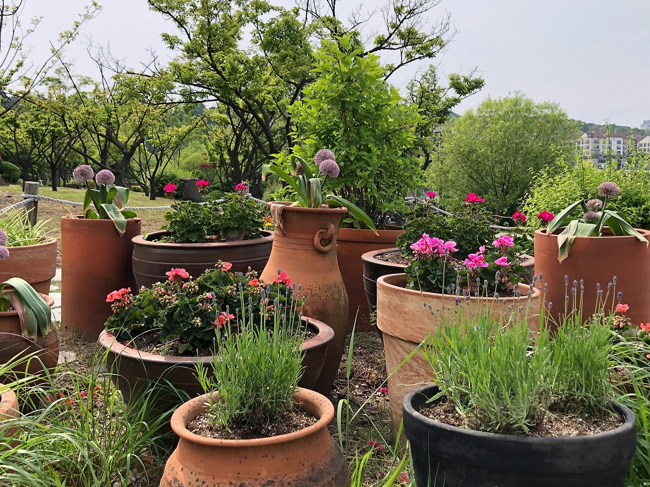 지친 이 사람을 위해 바로 앞쪽에 아름다운 화분다발을 준비하셨는데, 이 사람은 별로 관심이 없다.