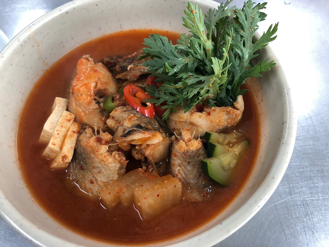 7. 생선찌개: 30분짜리이다. 문제는 동태를 주는데 내장, 지느러미 제거를 잘해야 하고, 토막을 4~5cm로 잘라야 한다. 국물을 고추장으로 내는데, 맛이 괜찮아 지금도 사용하고 있다.