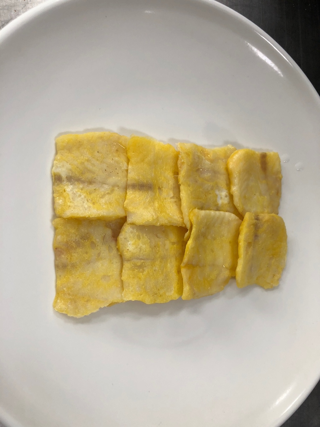 8. 생선 전:25분짜리인데 힘든 작품이다. 동태 한 마리를 주고 포를 떠서 생선 전을 구워 제출해야 한다. 속으로 Crazy!라고 외친 작품이다. '제발 시험문제로 나오지 마라'라고 모든 학생들이 생각하는 품목이다. 생선장수도 아닌데 생선포를 어떻게 뜬단 말인가? 나도 난생처음 생선포를 떴다, 엉망진창으로! (0.5cmx0.5cmx4cm로 8개 제출이다. 나는 포를 잘못 떠서 생선조각들을 이어 붙여 8개를 만드느라고 진땀을 뺐다.)