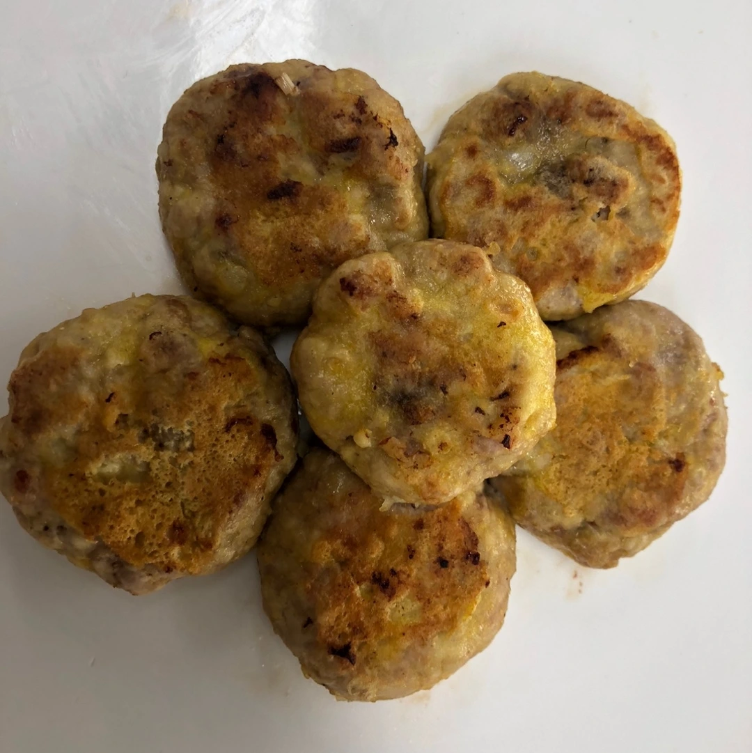9. 육원전: 20분짜리. 고깃덩어리를 주고 잘게 다져서 동그랑땡을 만들어라고 한다. 똑같은 크기의 6개를 제출해야 하기 때문에 양조절을 잘해야 한다. 아래의 사진은 내 작품이다(유일하게 저장되어 있다)