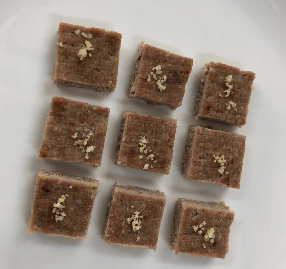 11. 섭산적:30분짜리이다. 이거~ 어렵다. 덩어리 고기를 잘게 다져서 두부 넣고 네모나게 만들어, 석쇠에 굽는다. 그리고 잘라서 0.7cmx2cmx2cm로 9개 이상 제출해야 한다. 요즘 석쇠로 고기 굽는 사람 있는지? 전문 음식점이면 몰라도 집에서 석쇠를 사용한 적이 없는데 석쇠로 고기를 구울려니, 불조절을 못해 이리저리 시커멓게 타고. 장난 아니었다!