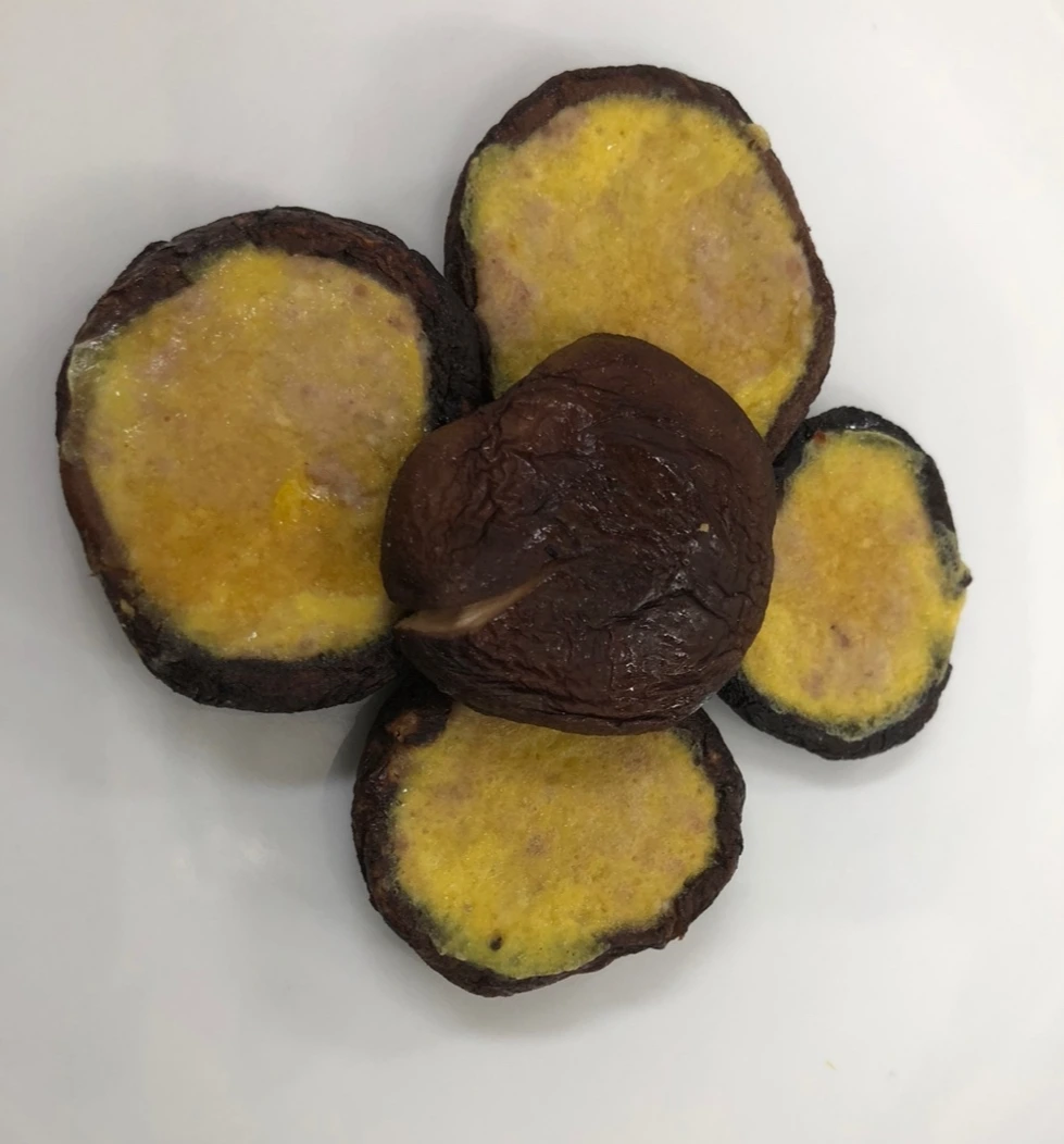 10. 표고 전: 20분짜리. 표고버섯 안에 고기를 채워서 굽는다. 모든 고기는 덩어리를 준다. 보기는 좋은데 손이 많이 간다. 표고버섯을 유장처리하는 것은 처음 들어봤고, 처음 해 봤다.(사실 31개 품목 다 처음 해 본 것들이다.)