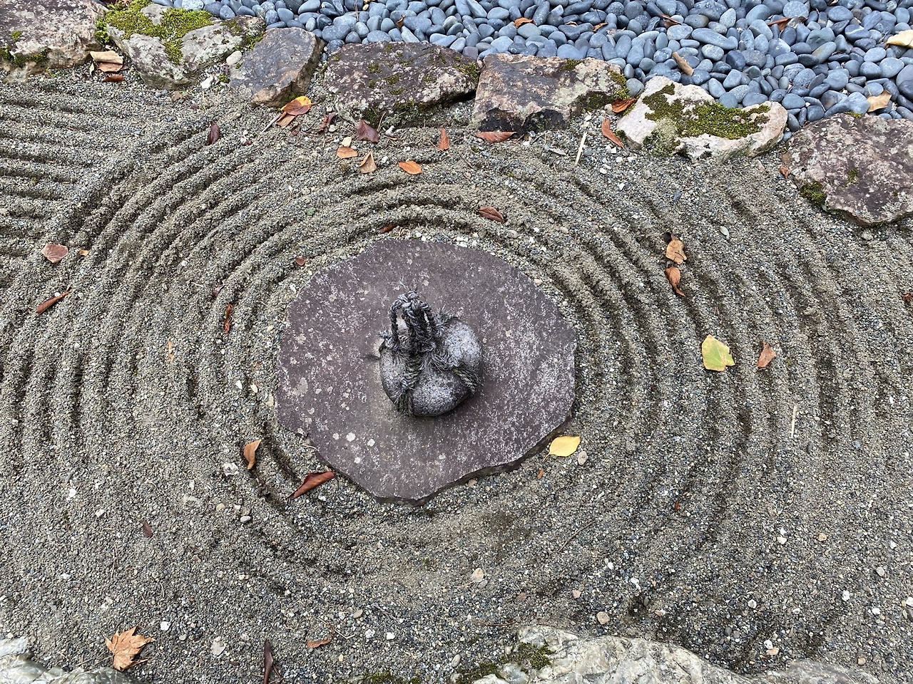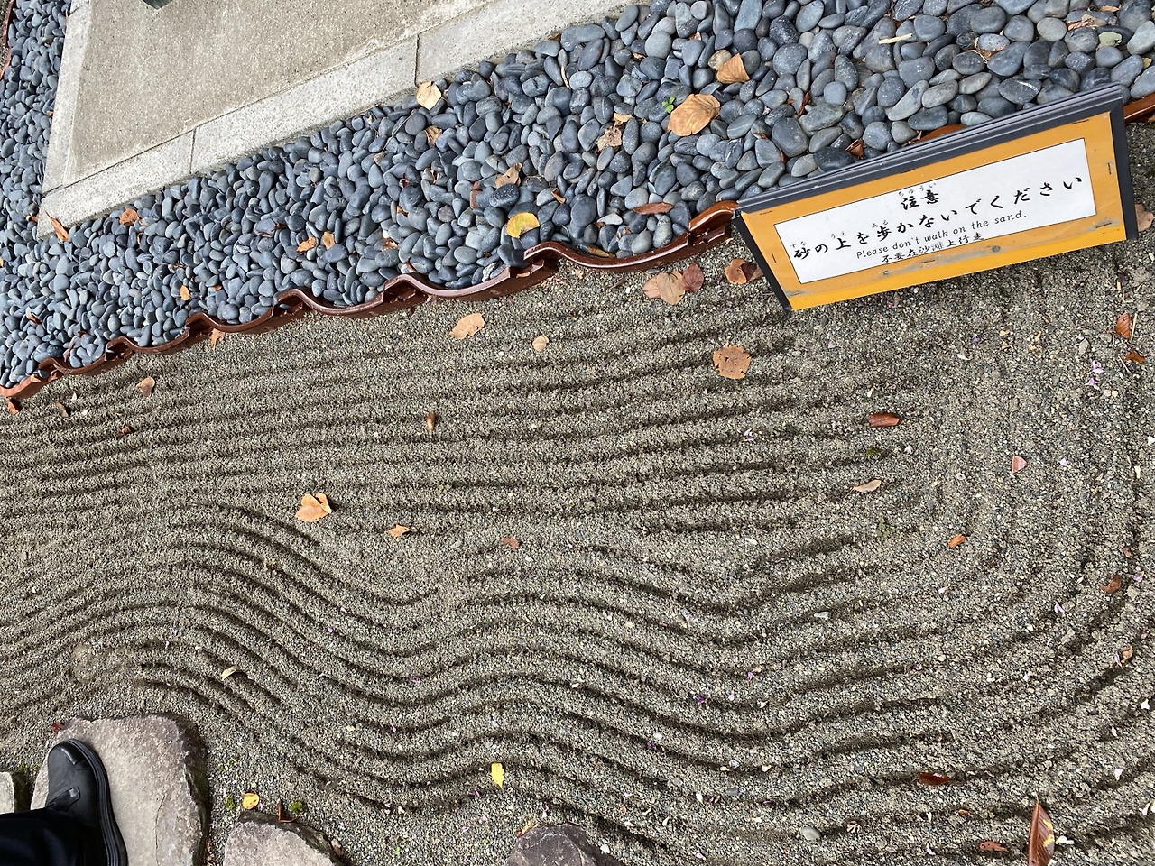 '검은 자갈이 깔린 길로만 다니고 이 흙은 밟지 말라는 뜻이 아닌가' 하고 나는 생각해 본다. 일본 사람의 섬세함이 느껴진다. 비가 오면 땅에 엎드려 이런 오밀조밀한 그림을 그리고 있을 공원 관리사를 상상해 보며, 우리는 공원을 떠났다.