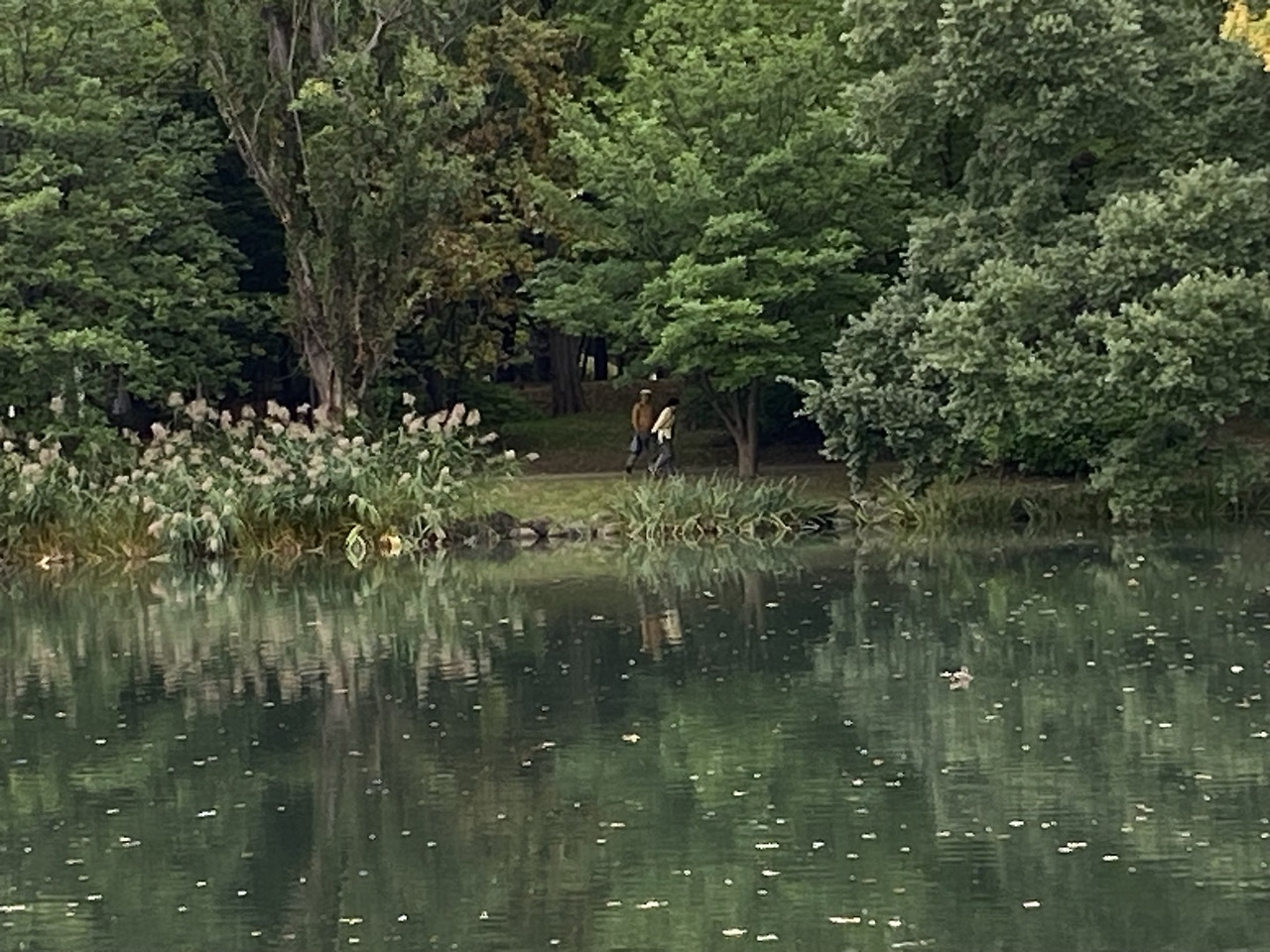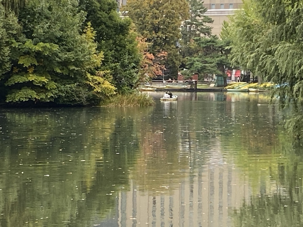 아침부터 연못에서 배를 타는 사람도 있고