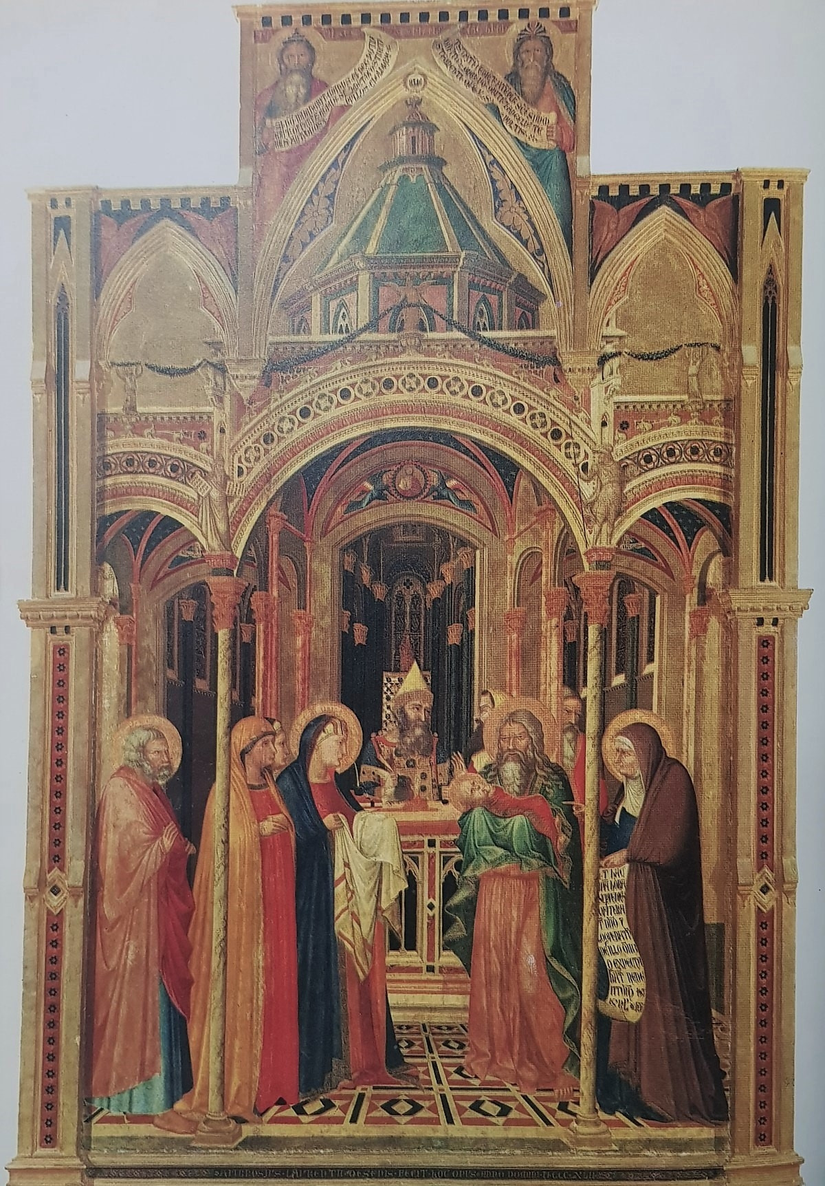 브루넬레스키와 마사초가 있기 100여 년 전, 암브로지오 로렌체티가 그의 작품에 처음으로 소실점을 사용합니다. 소실점을 향하는 실선 기울기가 바닥 타일과 벽면에서 부분적으로 시도된 것입니다. 부분 적용이다 보니 완전한 원근법이라 할 수는 없지만, '거리 차이에 따른 크기 변화'를 시도한데 큰 의미가 있습니다. 로렌체티가 없었다면, 아마 브루넬레스키의 업적은 더욱 지연되었을 수도 있겠습니다.