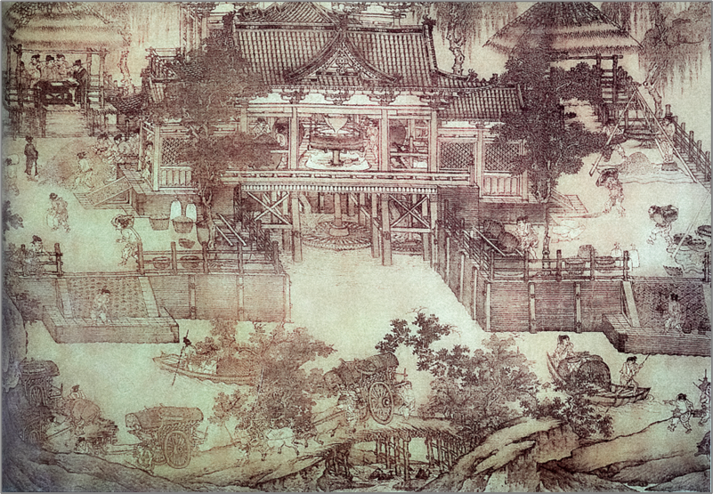 북송[AD 960-1127]의 장택단은 그의 그림에 '사투상법'이라는 면 분할법을 사용했습니다.