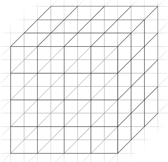 '면 분할 과정'은 '면 분할' 챕터에서 상세하게 다루고 있기 때문에 여기에서는 간략만 해 봅니다. 그 원리는 '평면'과 '입체 면'의 분할로 구분할 수 있는데, '평면 분할'은 평면에서 그려지는 모든 수직-수평 선, 대각 선이 '평행'입니다. 그러나 '입체 면 분할'에서는 공간 육면체에 '원근'과 '방향'이 있고, 때문에 원근과 방향에 따르는 '입체의 크기와 면의 면적에 변화'가 있게 됩니다.