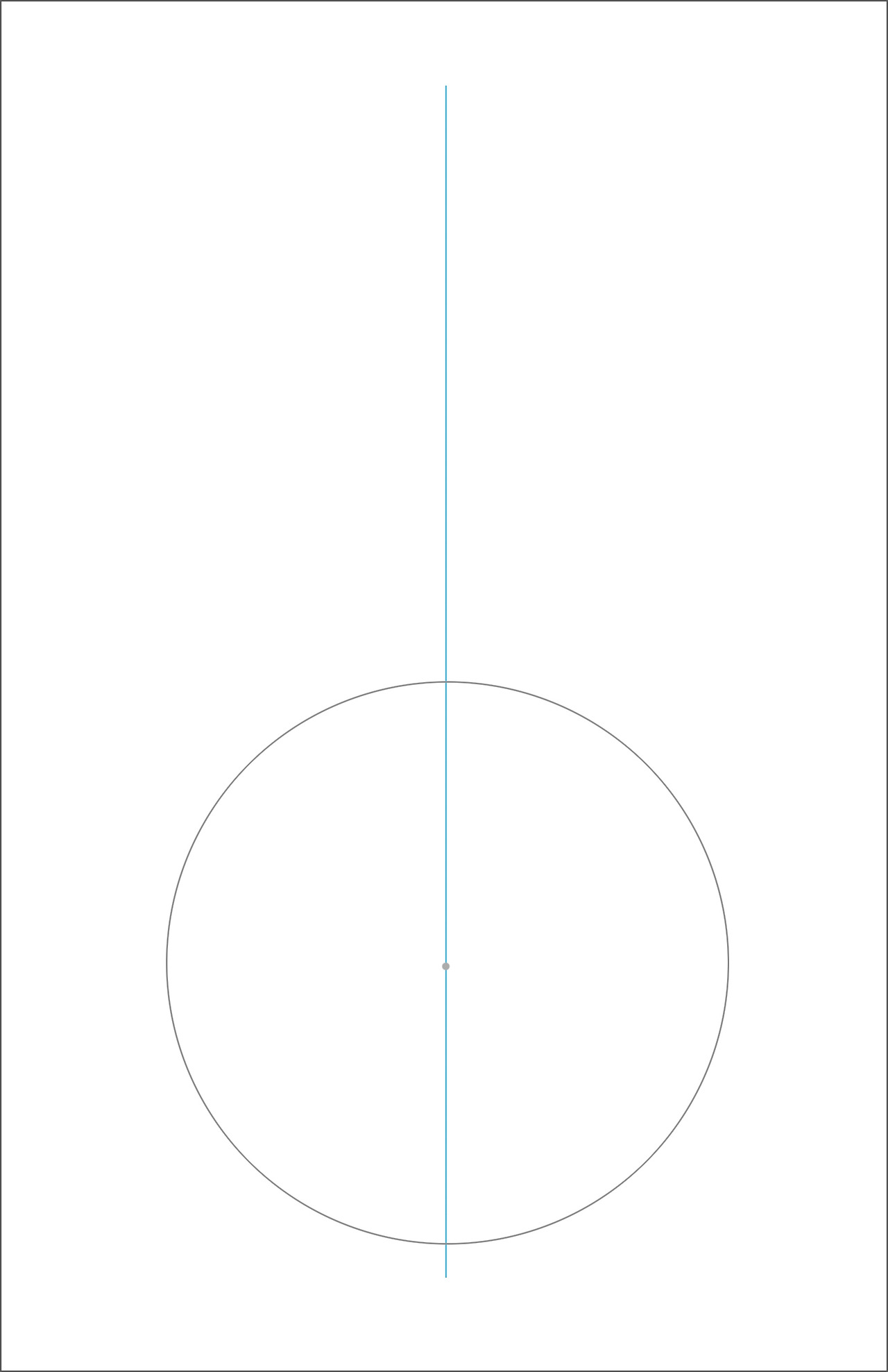그리고, 그려진 원의 정수리에 교차된 수직선의 교차점을 확인합니다.