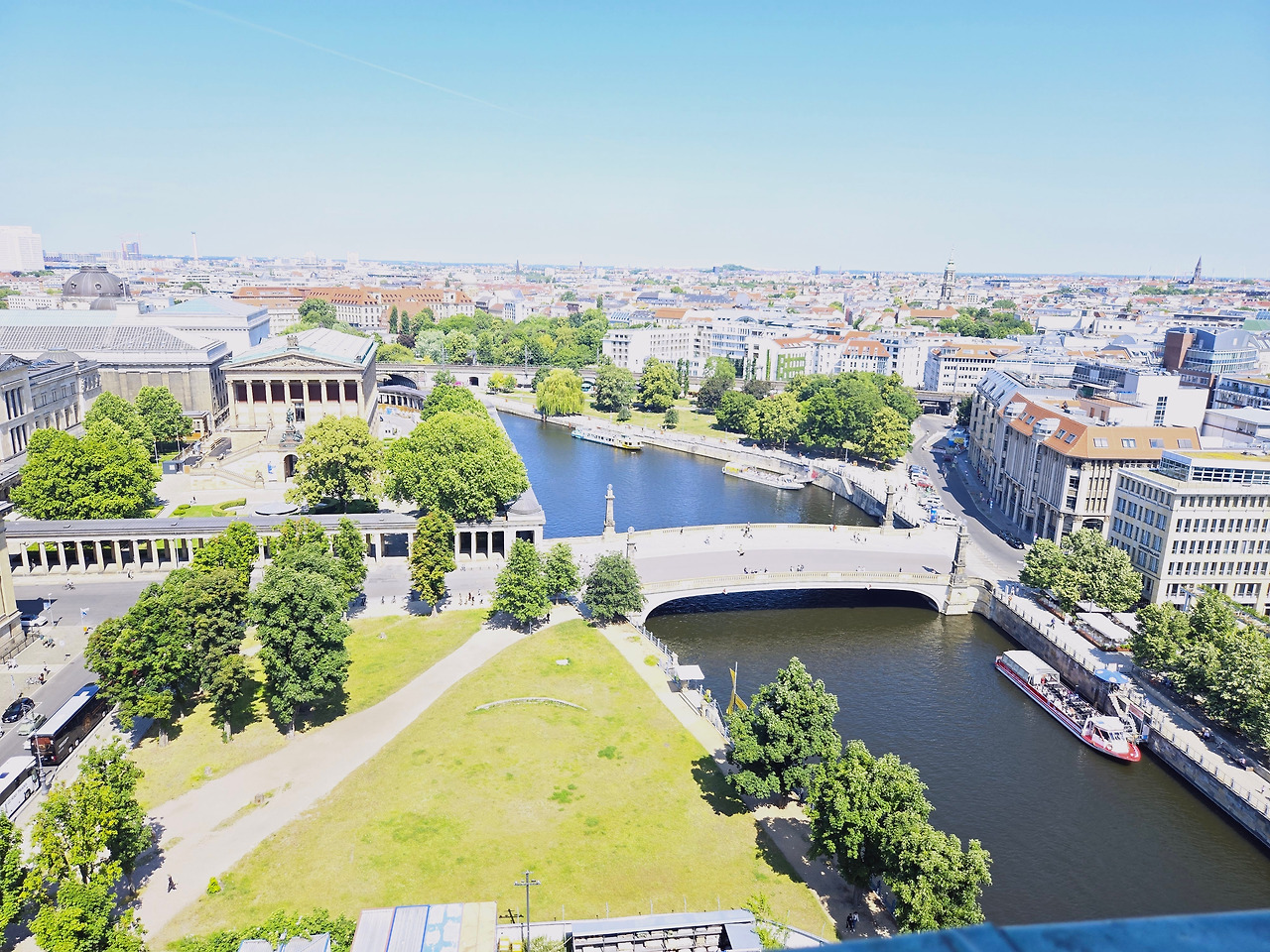 베를린 돔의 전망대에 오르기 위해 수많은 계단을 올라갔다. 탁 트인 전경에 탄성이 나왔다. 슈프레강 위로는 새하얀 유람선이 떠 있고, 노란색 전철이 오버바움 다리를 건너며 채도를 높였다. 과거와 현재의 다양한 건물들이 어우러진 베를린의 전경에서 오묘한 감동이 전해졌다.