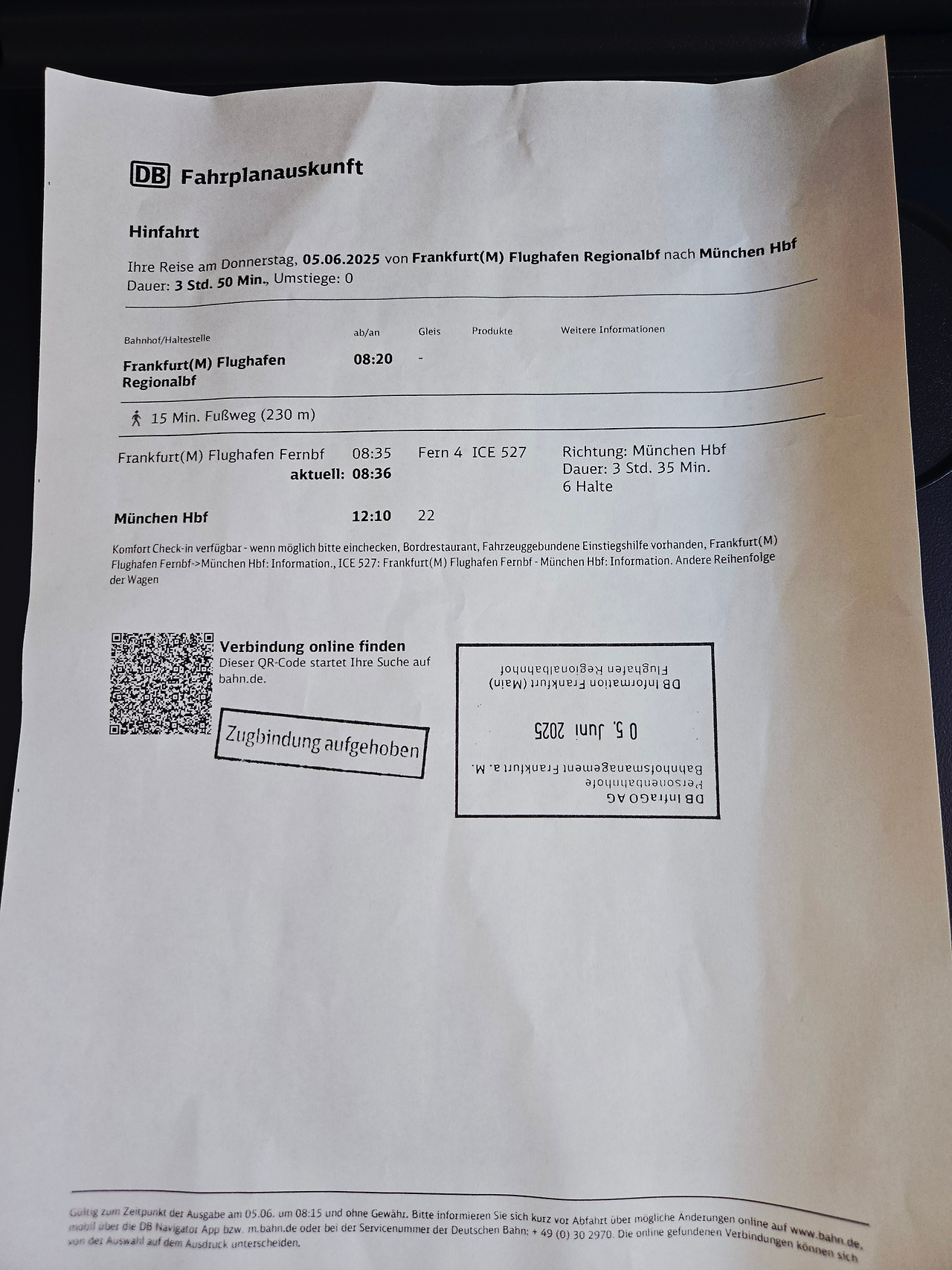 출발 1시간 30분 전에 취소 알림이 오다니, 잠이 확 깼다. 프랑크푸르트와 뮌헨 사이의 거리는 390km, 부산에서 춘천까지의 거리다. 이러다 오늘 안에 숙소에 못 가는 거 아닐까, 근면성실의 대명사 독일 아니던가? 이 나라의 철도 시스템을 이해할 수 없었다.