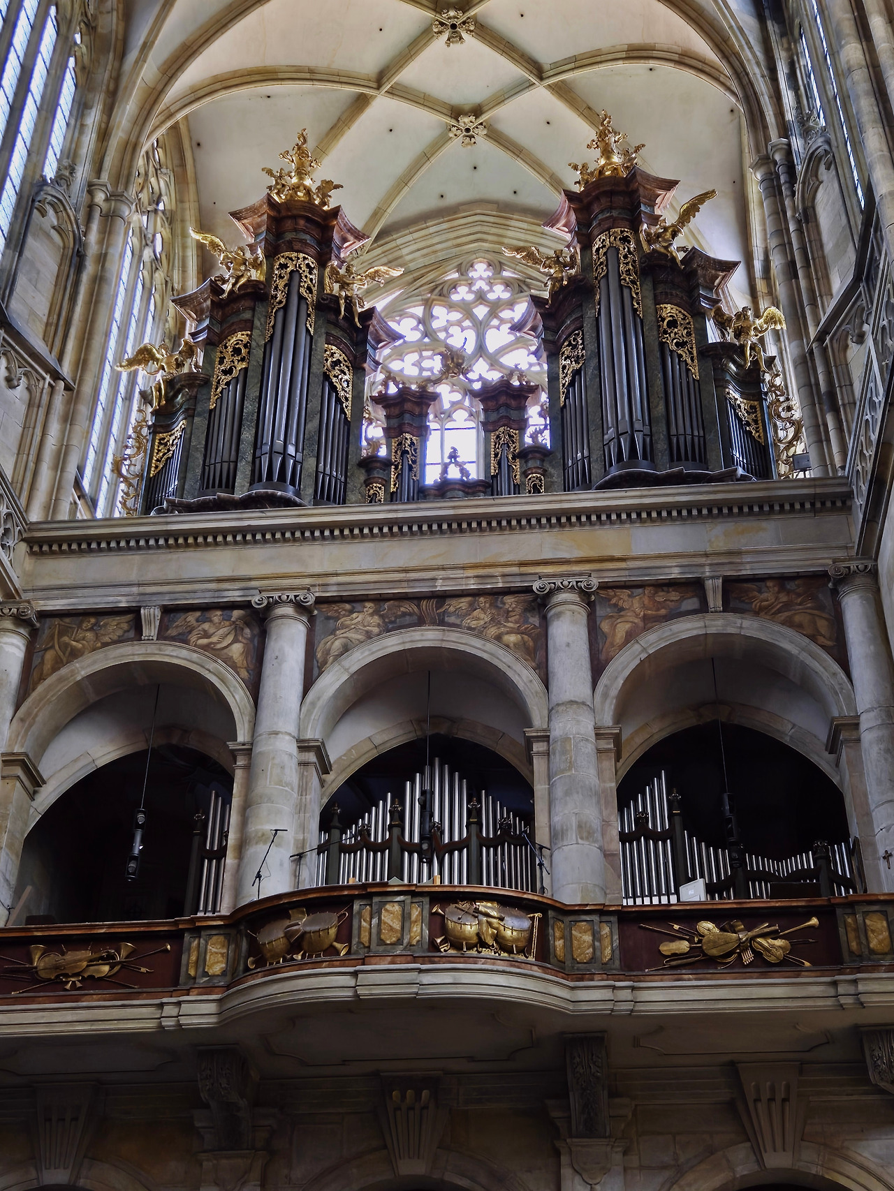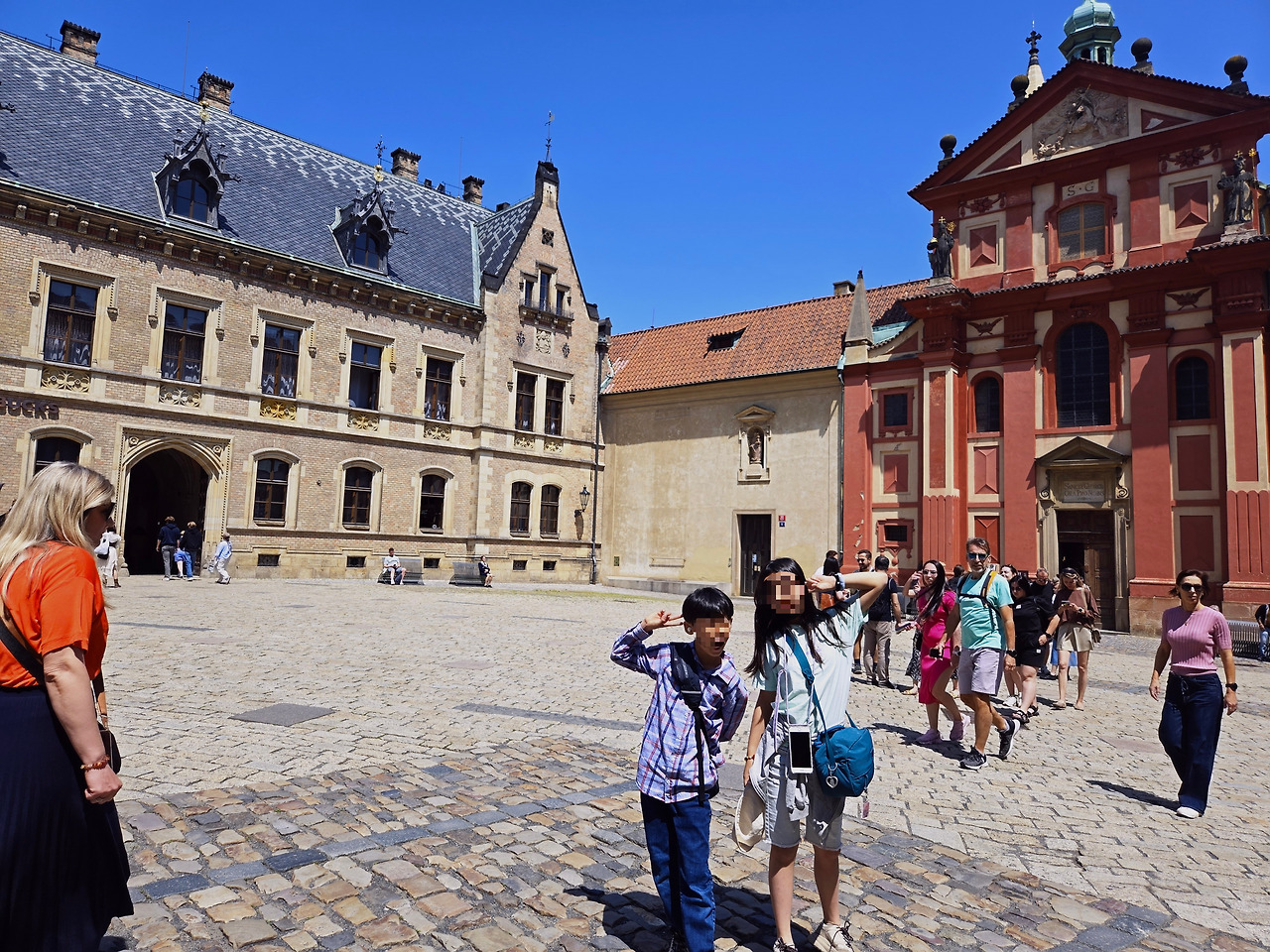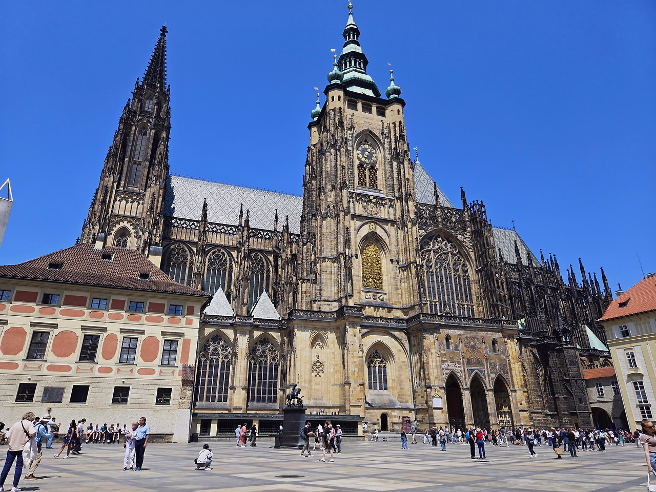 프라하성의 하이라이트는 성비투스 대성당이었다. 하늘로 치솟은 고딕 기둥과 거대한 장미창, 색색의 스테인드글라스가 압도적이었다. 산화된 사암 벽의 거뭇한 흔적은 천 년의 세월을 고스란히 드러냈고, 처마 끝 괴기스러운 가고일은 빗물을 뿜으며 악령을 쫓는 수호자처럼 서 있었다. 옆모습은 더 웅장했다. 수많은 첨탑과 섬세한 갈빗대 문양이 거대한 선박처럼 성당을 떠받치고 있었다.